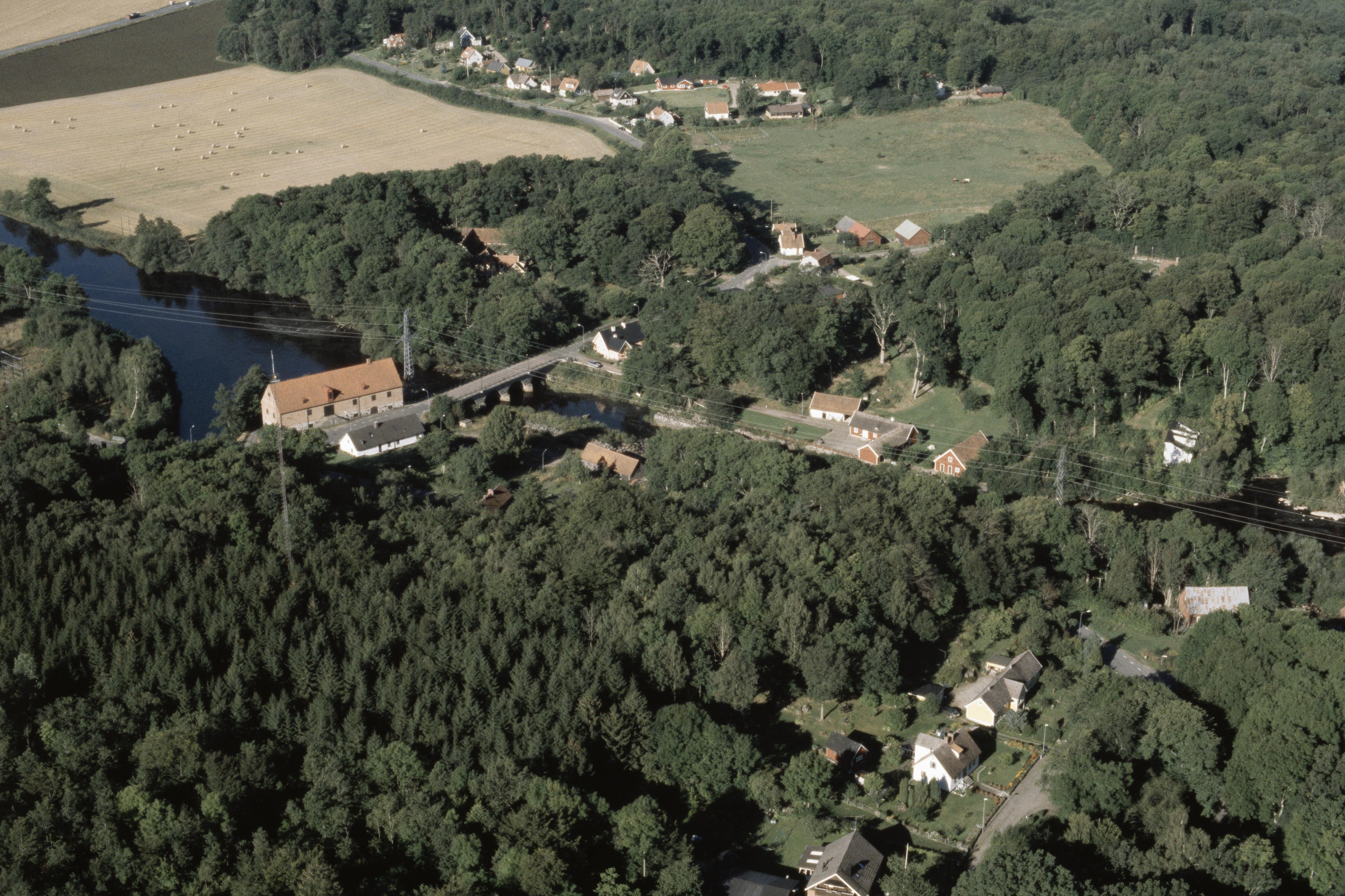 Beskrivning: Skrynarps gamla tomt RAÄnr Färlöv 123:1 och Torsebro krutbruk vid Helge å. Bilden är tagen mot (väderstreck): SV