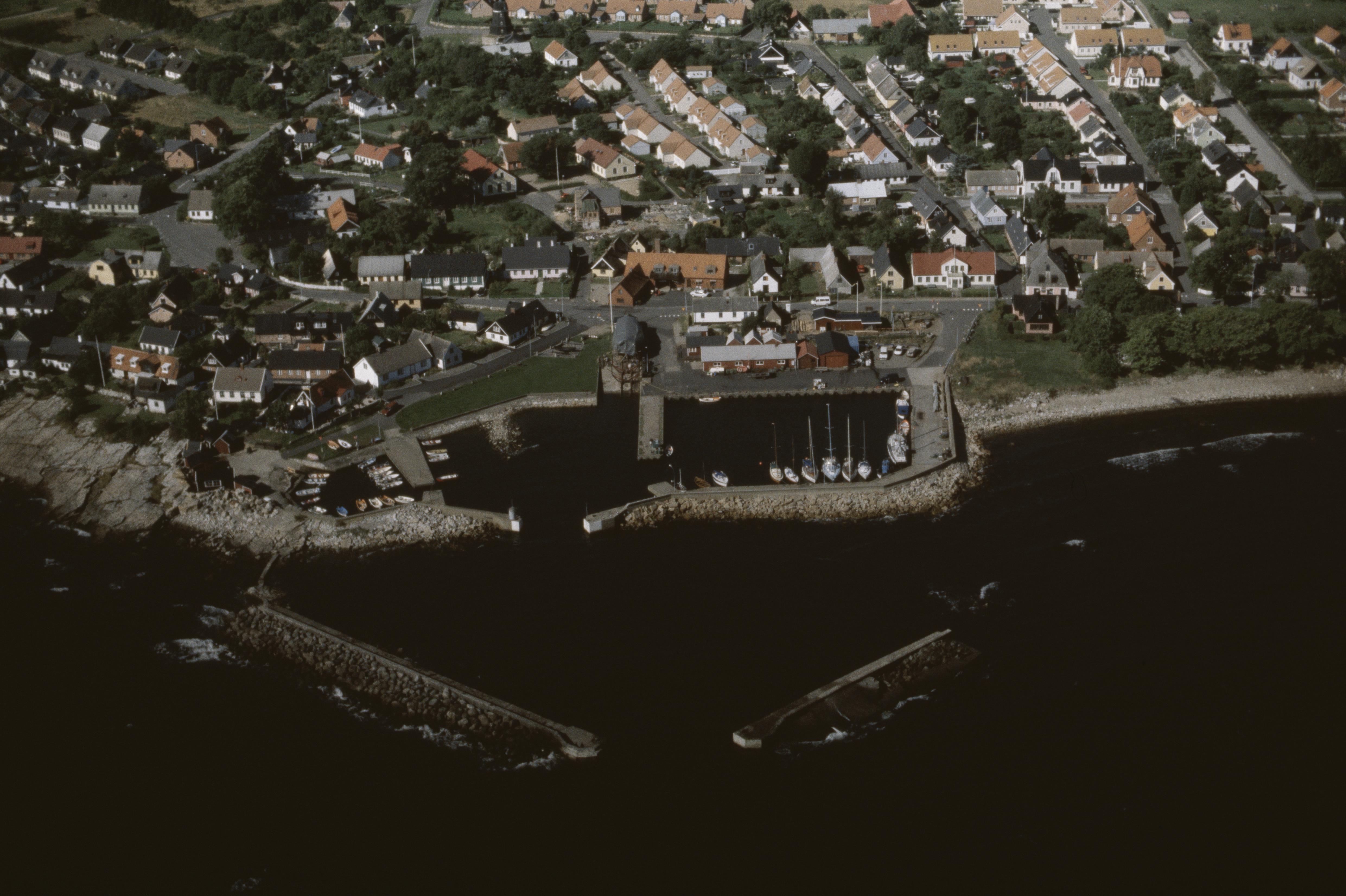 Beskrivning: Branteviks fiskeläge. Fiskehamnen. Bilden är tagen mot (väderstreck): V