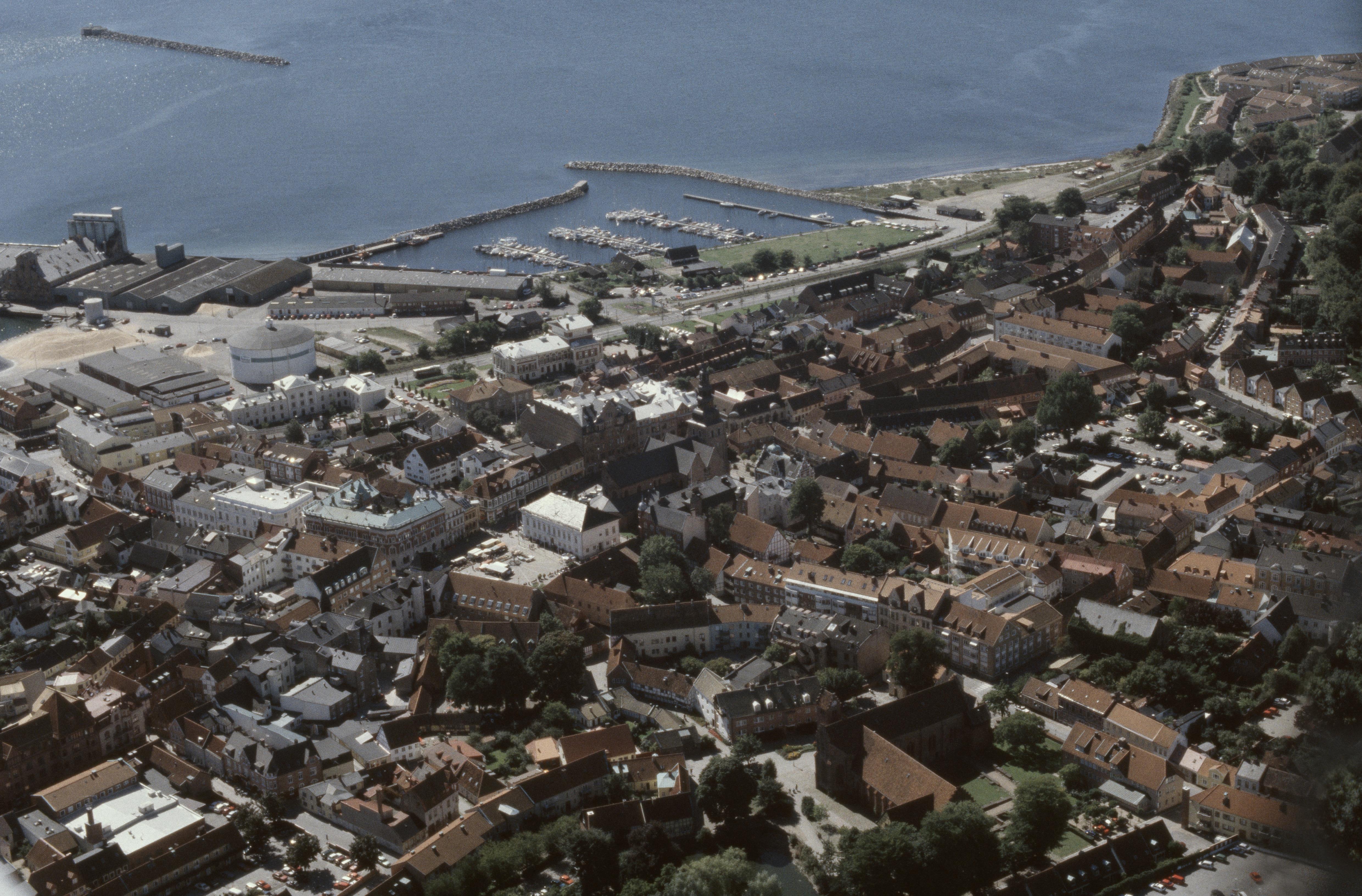 Beskrivning: Ystads stad och hamn. Bilden är tagen mot (väderstreck): Ö