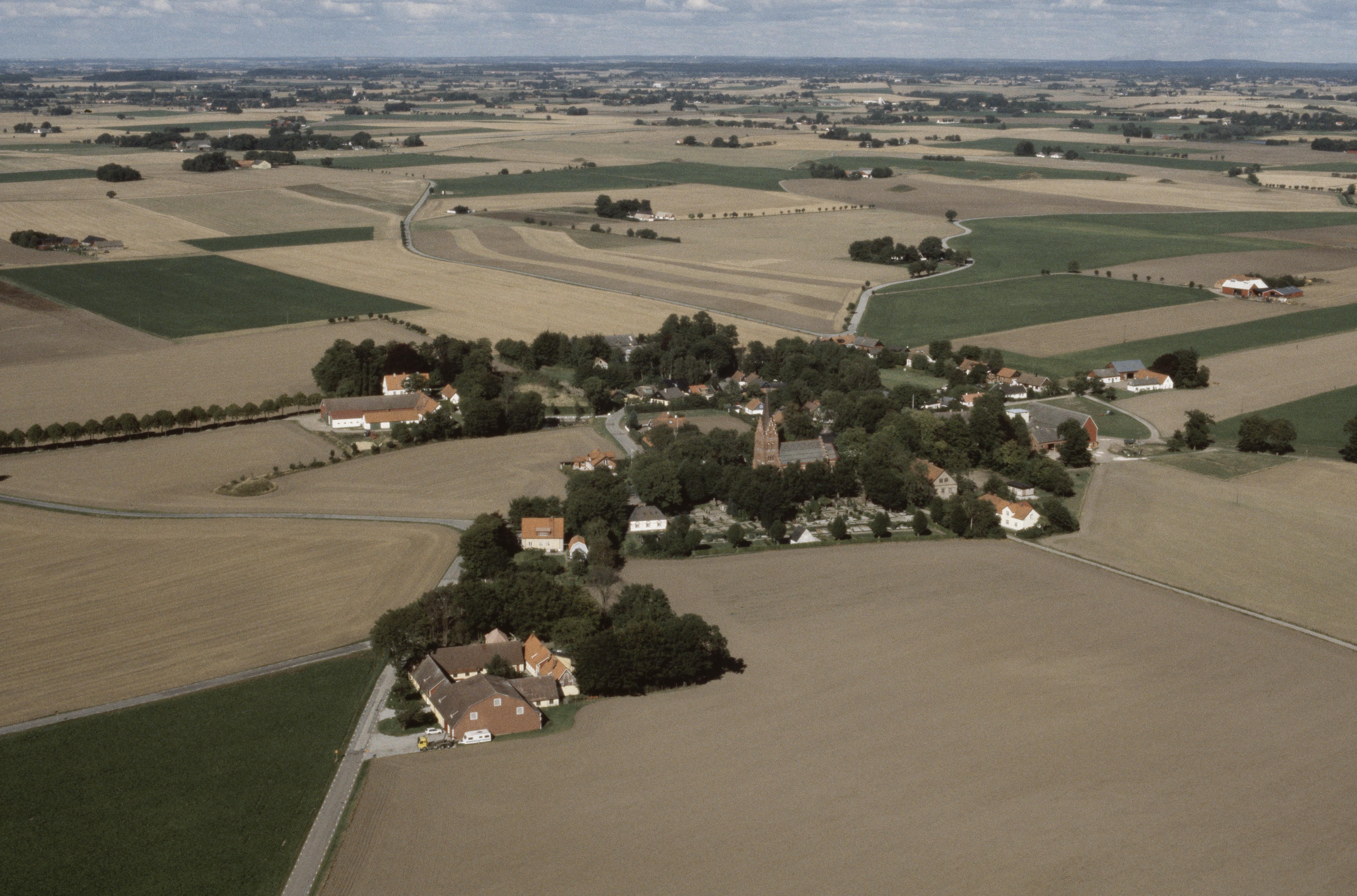 Beskrivning: Anmärkning (övrig): Riksintresse-nr/namn: M136a - Fuglie - Mellan-Grevie - Skåre. Socken: delen i Bodarp, Fuglie, Hammarlöv, Lilla Slågarp, Maglarp, Skegrie, Stora Slågarp, Västra Tommarp och Västra Vemmerlöv socknar. Motivering: A. Centralbygd med det av jordbruksskiftena präglade slättlandskapet Söderslätt med förhistorisk bruknings- och bosättningskontinuitet samt för Sverige unik koncentration av tätt liggande kyrkbyar av åtminstone medeltida ursprung som väl speglar kyrkobyggnadskonstens stilideal under tiden medeltid till 1900-tal. (Boställsmiljö, Kvarnmiljö). - B. Skåre fiskeläge med ett oregelbundet och successivt framvuxet gatunät med äldre bebyggelse med anknytning till fiske och sjöfart samt lämning(…) Texten i detta fält har förkortats vid migrering till e-arkivet. Se filbilagan extra.xml för fullständig information under note_archivist. Beskrivning: Fuglie kyrka och kyrkby. Bilden är tagen mot (väderstreck): NNO Fotosyfte: Flygbildsdokumentation