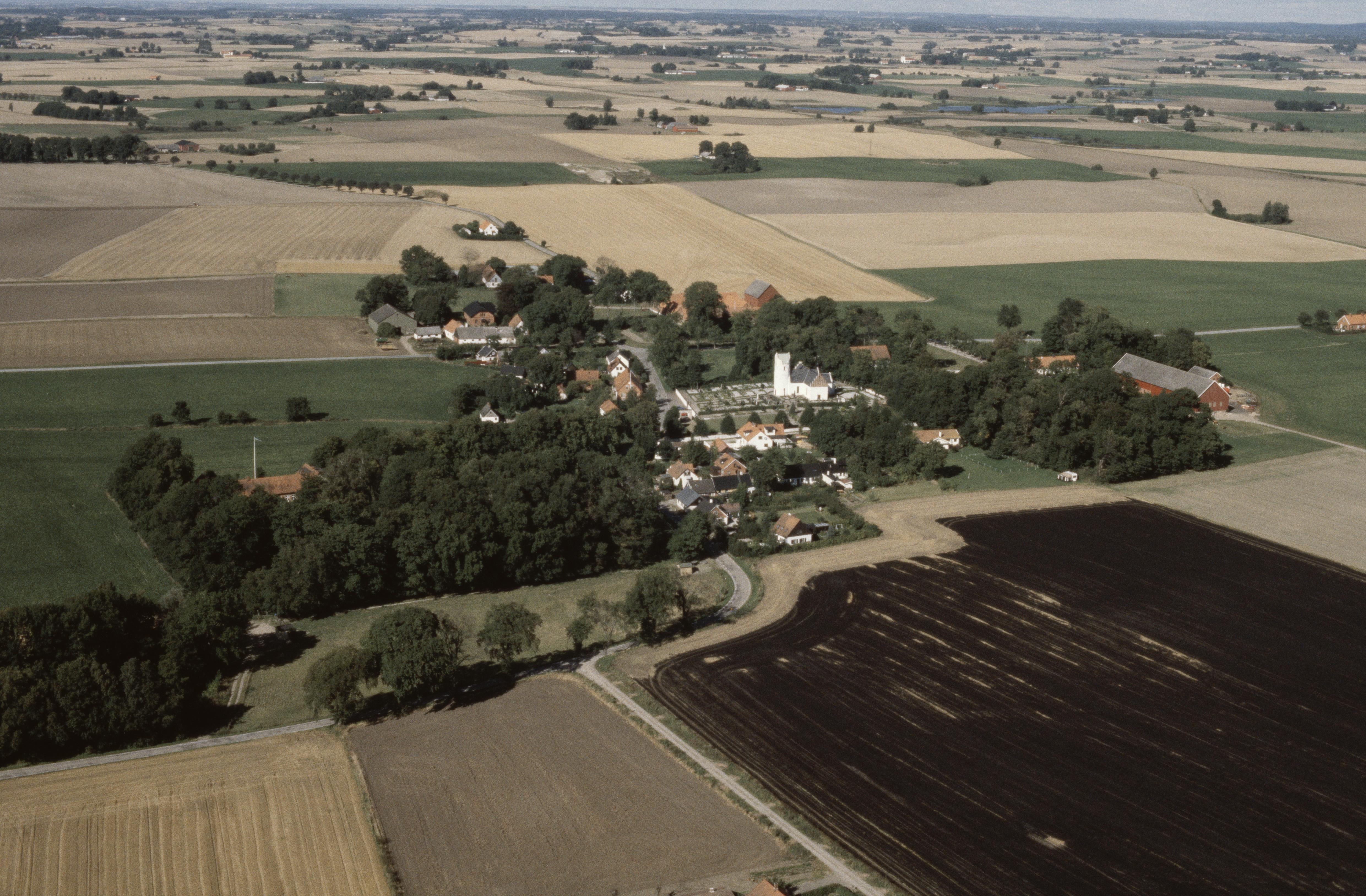 Beskrivning: Hammarlövs kyrka och kyrkby. Bilden är tagen mot (väderstreck): NO