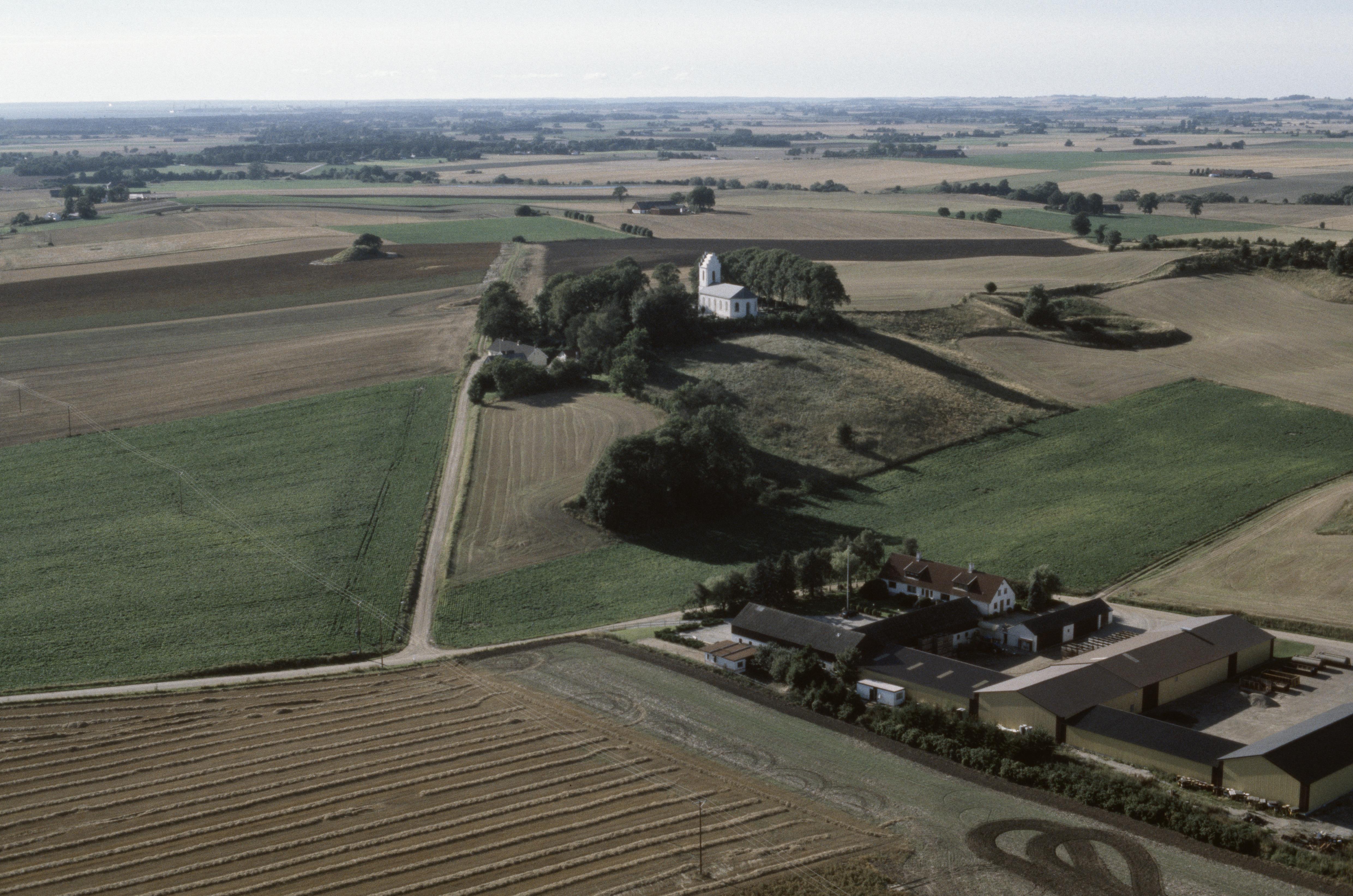 Beskrivning: Anmärkning (övrig): Riksintresse-nr/namn: M32b ? Norrvidinge - Södervidinge. Socken: delen i Dagstorp, Södervidinge och Västra Karaby. Motivering: Delvis flackt och lätt kuperat odlingslandskap med karaktär av dalgångsbygd kring Saxån och talrika fornlämningsmiljöer med monumental verkan, gårds- och bymiljöer samt kyrkby. - Uttryck för riksintresset: Kuperat höjdstråk i fullåkersbygd med lång bosättningskontinuitet och med monumentala fornlämningsmiljöer i form av bronsåldershögar och megalitgravar, Harald Hindetands gravhög, Karaby backar. Dagstorp, Södervidinge, Döjsöbro och Västra Karaby 1800-talskyrkor, den trelängade Dagstorps gammelgård med välbevarad korsvirkesbebyggelse från tidigt 1800-tal och stenval(…) Texten i detta fält har förkortats vid migrering till e-arkivet. Se filbilagan extra.xml för fullständig information under note_archivist. Beskrivning: Dagstorps kyrka. Bilden är tagen mot (väderstreck): NV Fotosyfte: Flygbildsdokumentation
