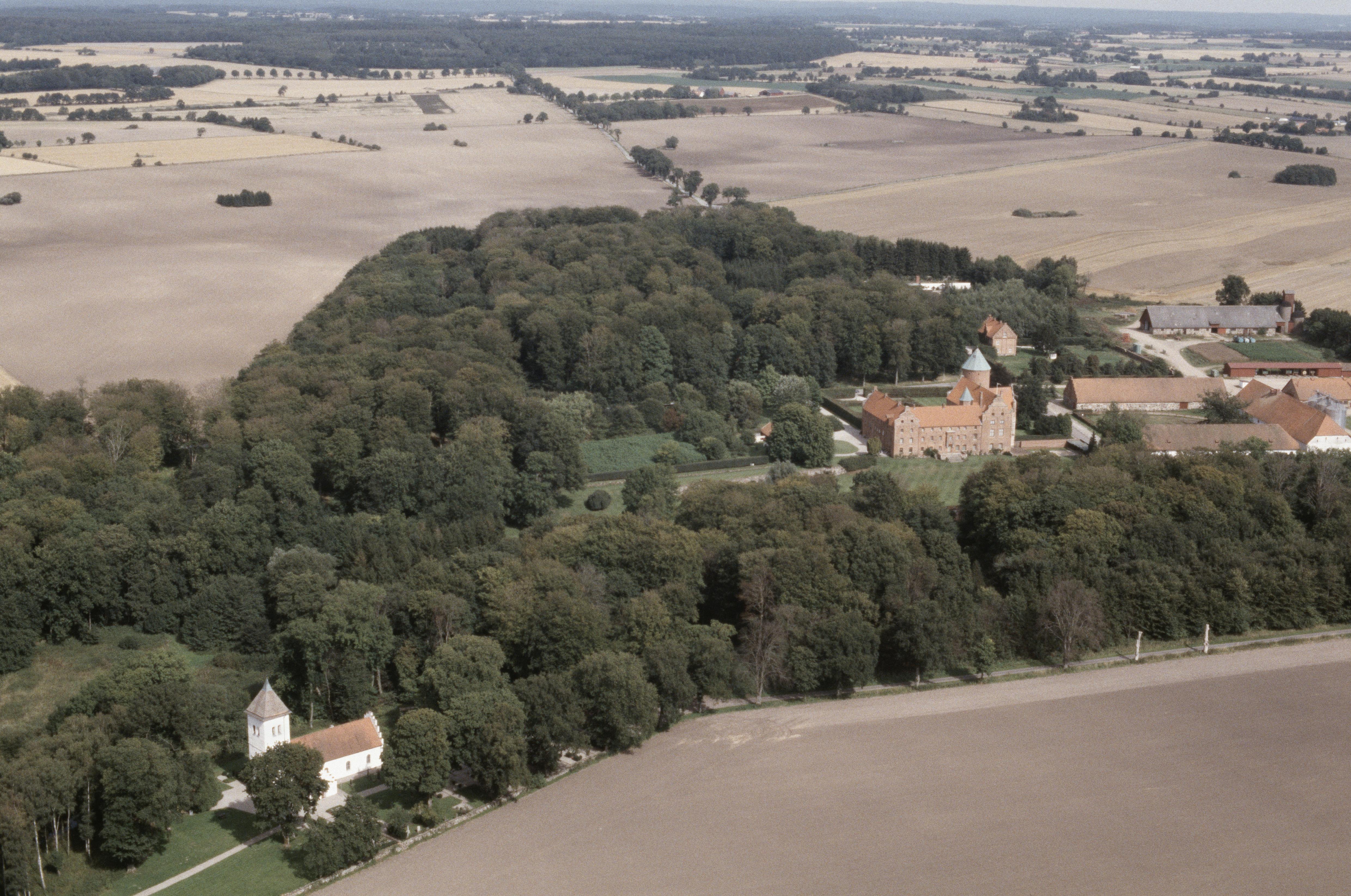 Beskrivning: Skarhults kyrka och Skarhults slott vid Bråån. Bilden är tagen mot (väderstreck): NO