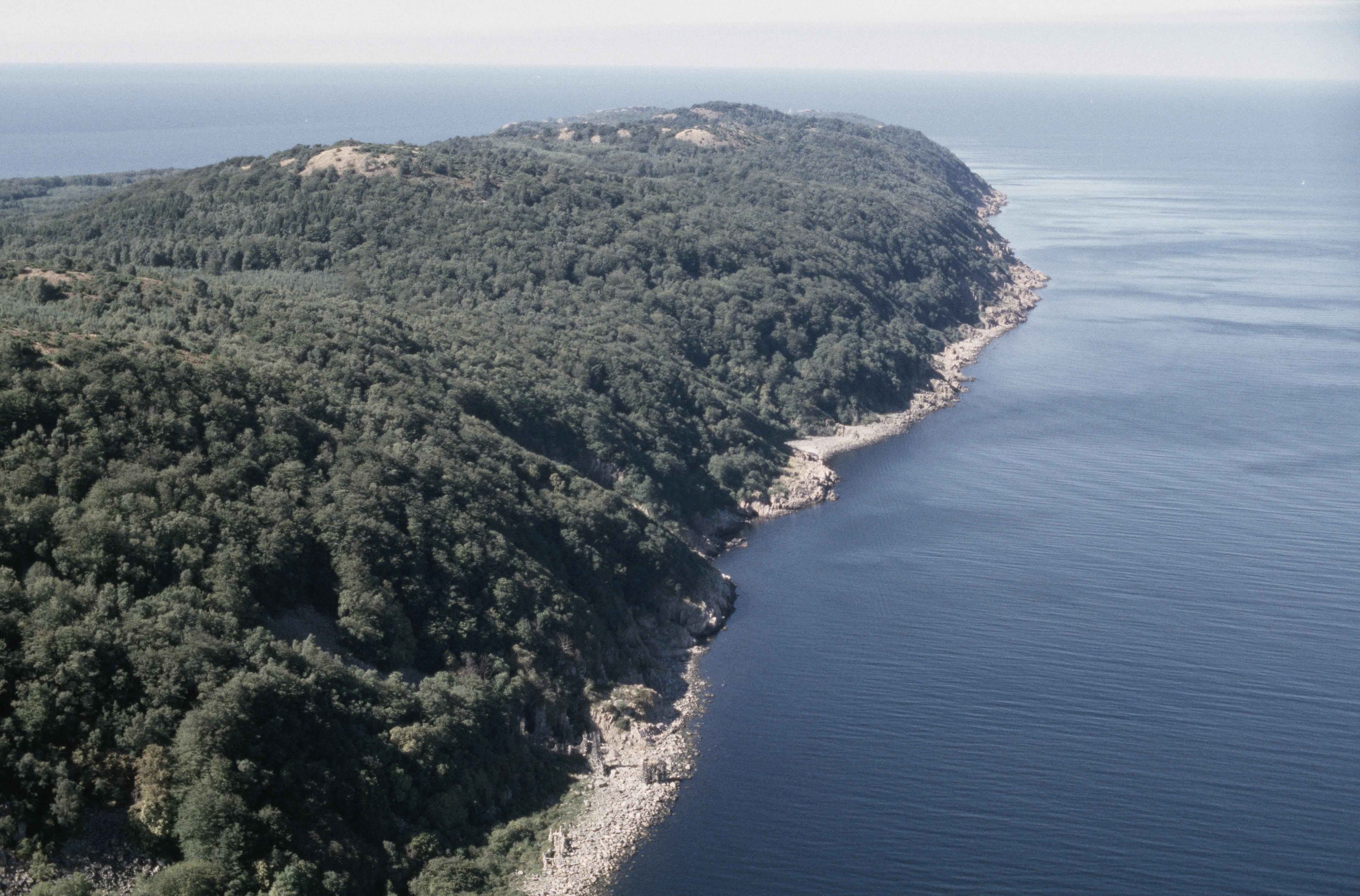 Beskrivning: Östra Kullaberg. I skogsområdet vid Håkull, Gregers backar med färdväg RAÄnr Brunnby 348, Valdemarsgrottan och Håle stenar m.fl. Bilden är tagen mot (väderstreck): V