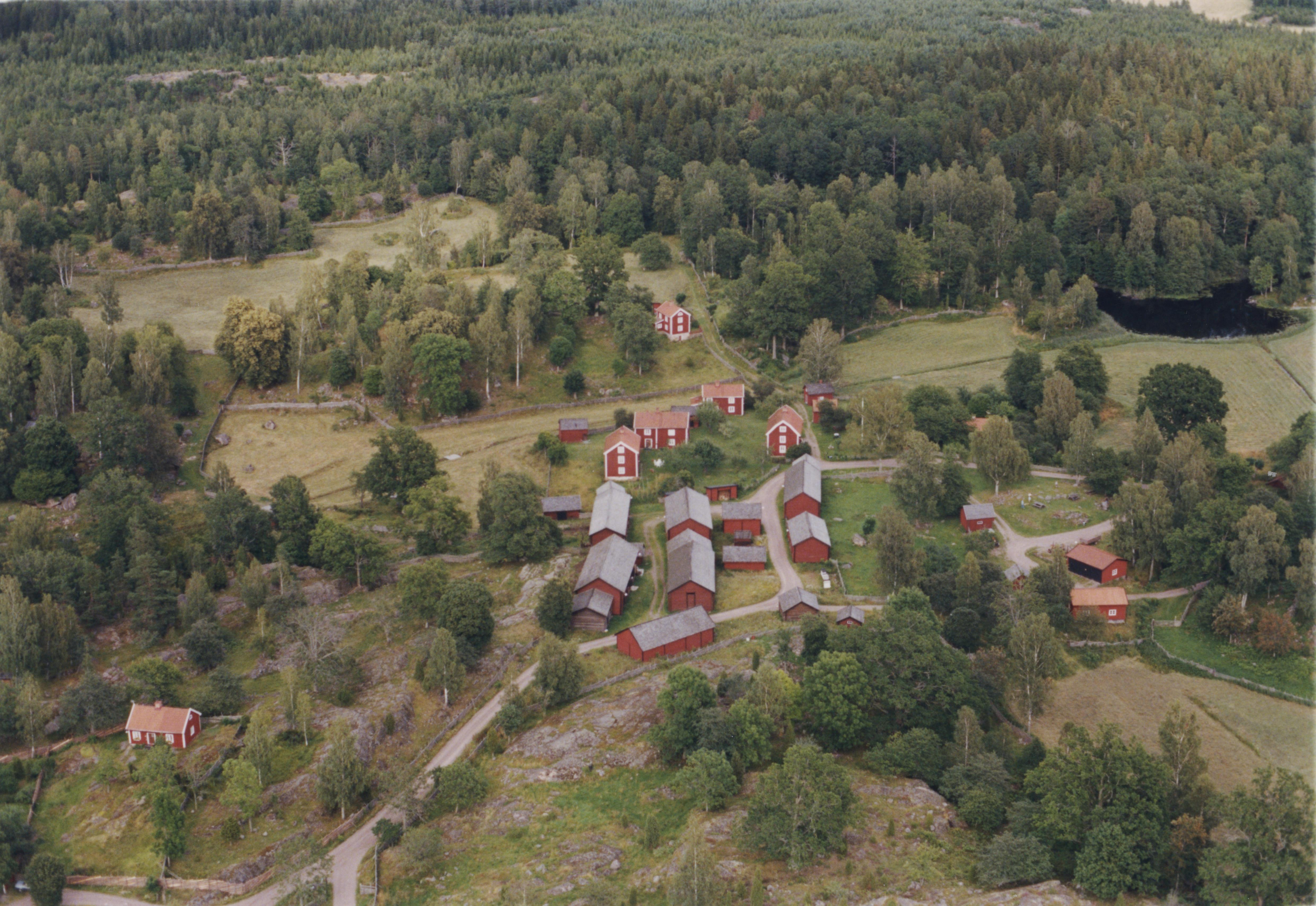 Beskrivning: Stensjö by, en oskiftad klungby och kulturreservat RAÄnr Döderhult 386:1. Bilden är tagen mot (väderstreck): Ö