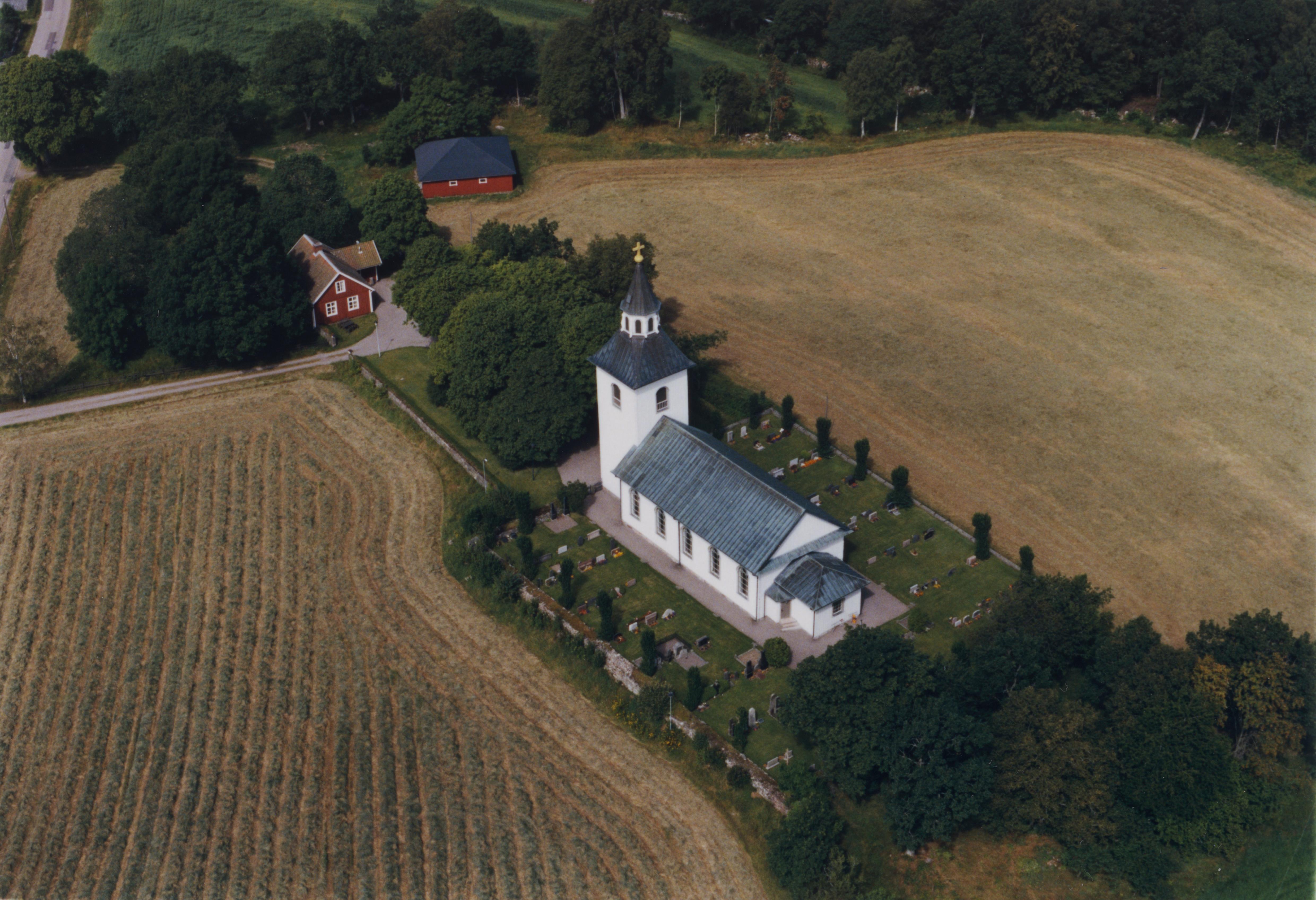Beskrivning: Herråkra kyrka i Vraneke by. Vid kyrka fossil åker RAÄnr Herråkra 349. Bilden är tagen mot (väderstreck): N