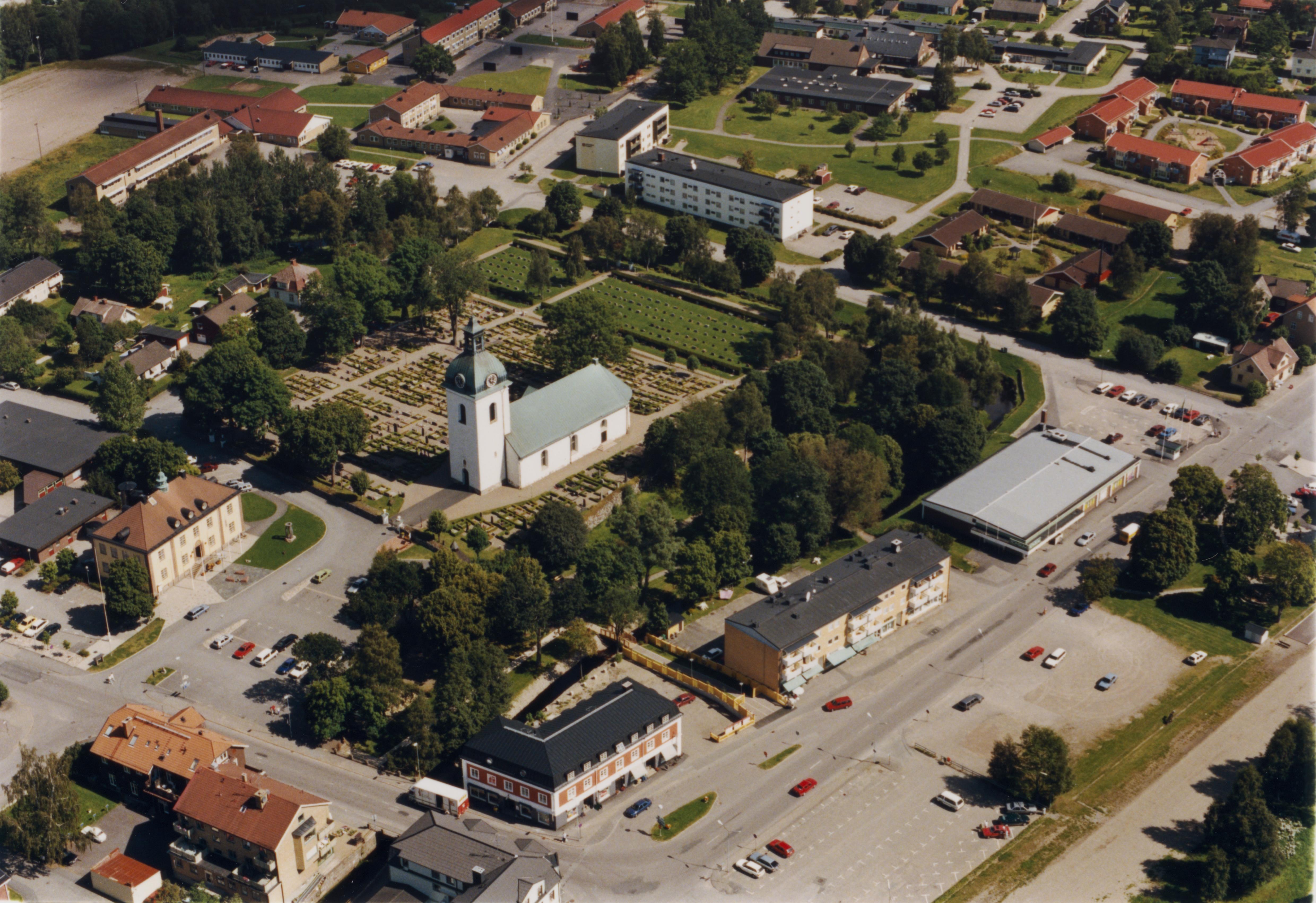 Beskrivning: Åseda tätort. Åseda kyrka vid bildens mitt. Bilden är tagen mot (väderstreck): NO