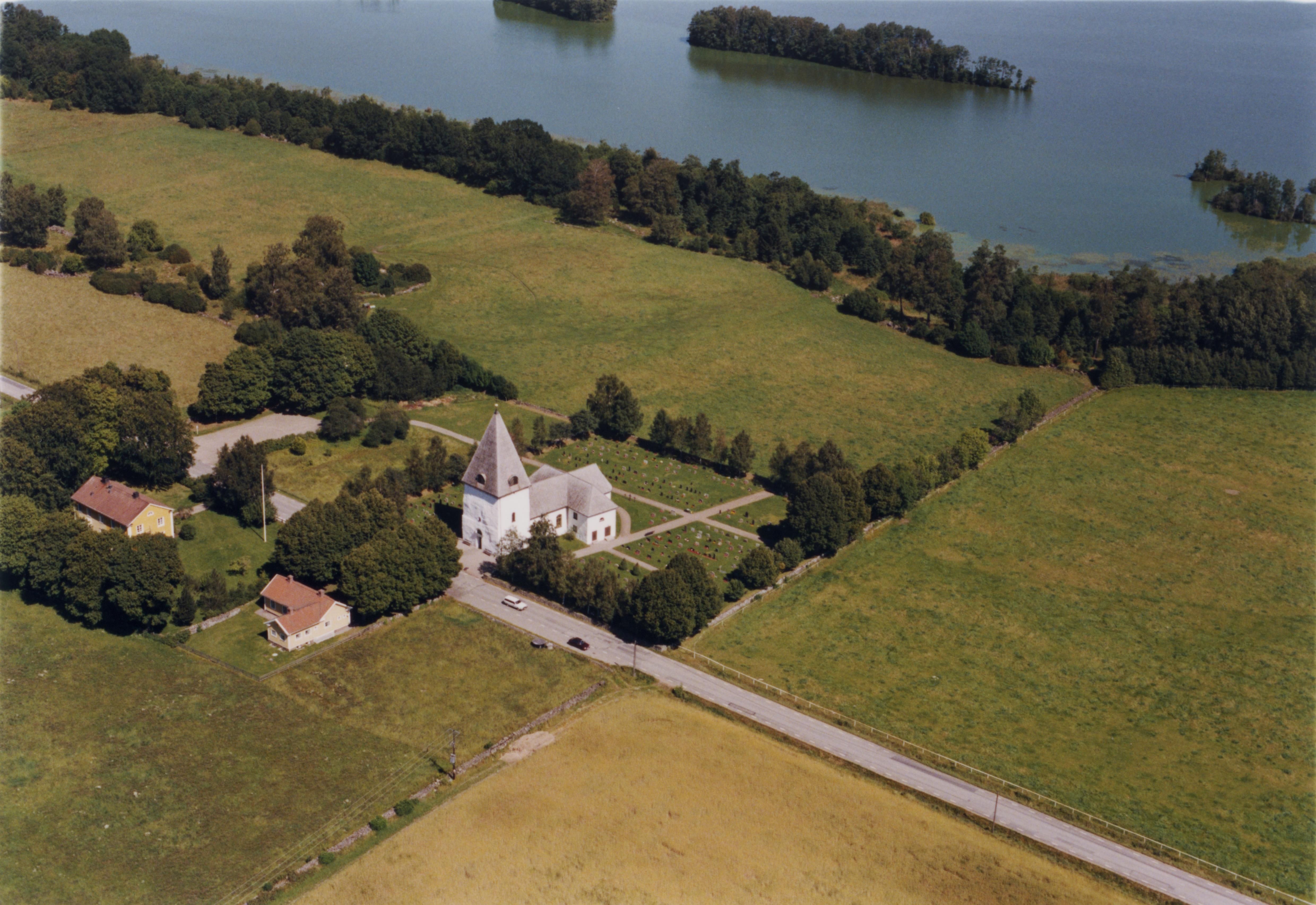 Beskrivning: Bergunda kyrka vid Norra Bergundasjön. Bilden är tagen mot (väderstreck): NO