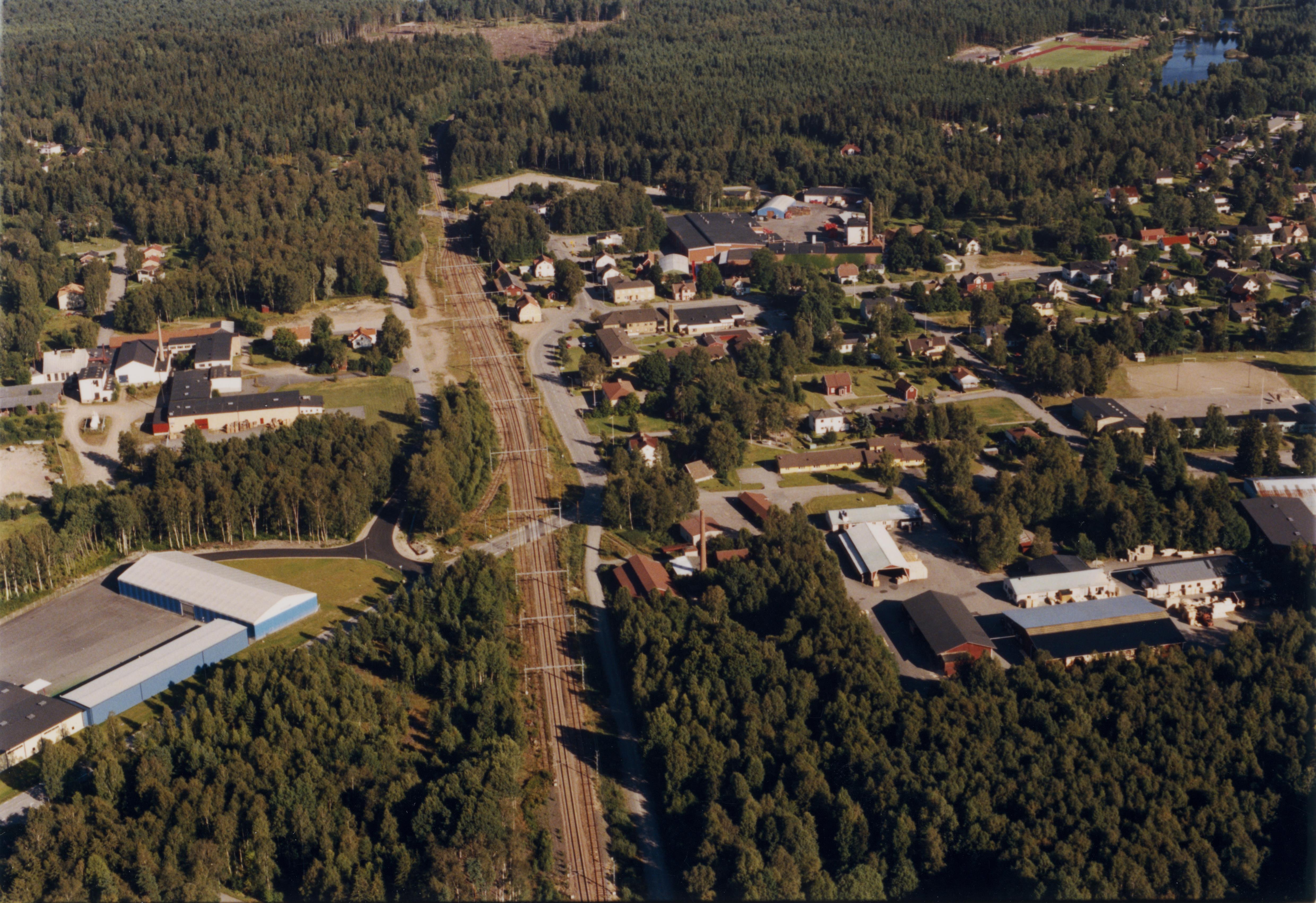 Beskrivning: Skruvs bruksort och järnvägsstation. Vid bildens mitt Skruvs bruk / Skruvs glasbruk. Bilden är tagen mot (väderstreck): SO