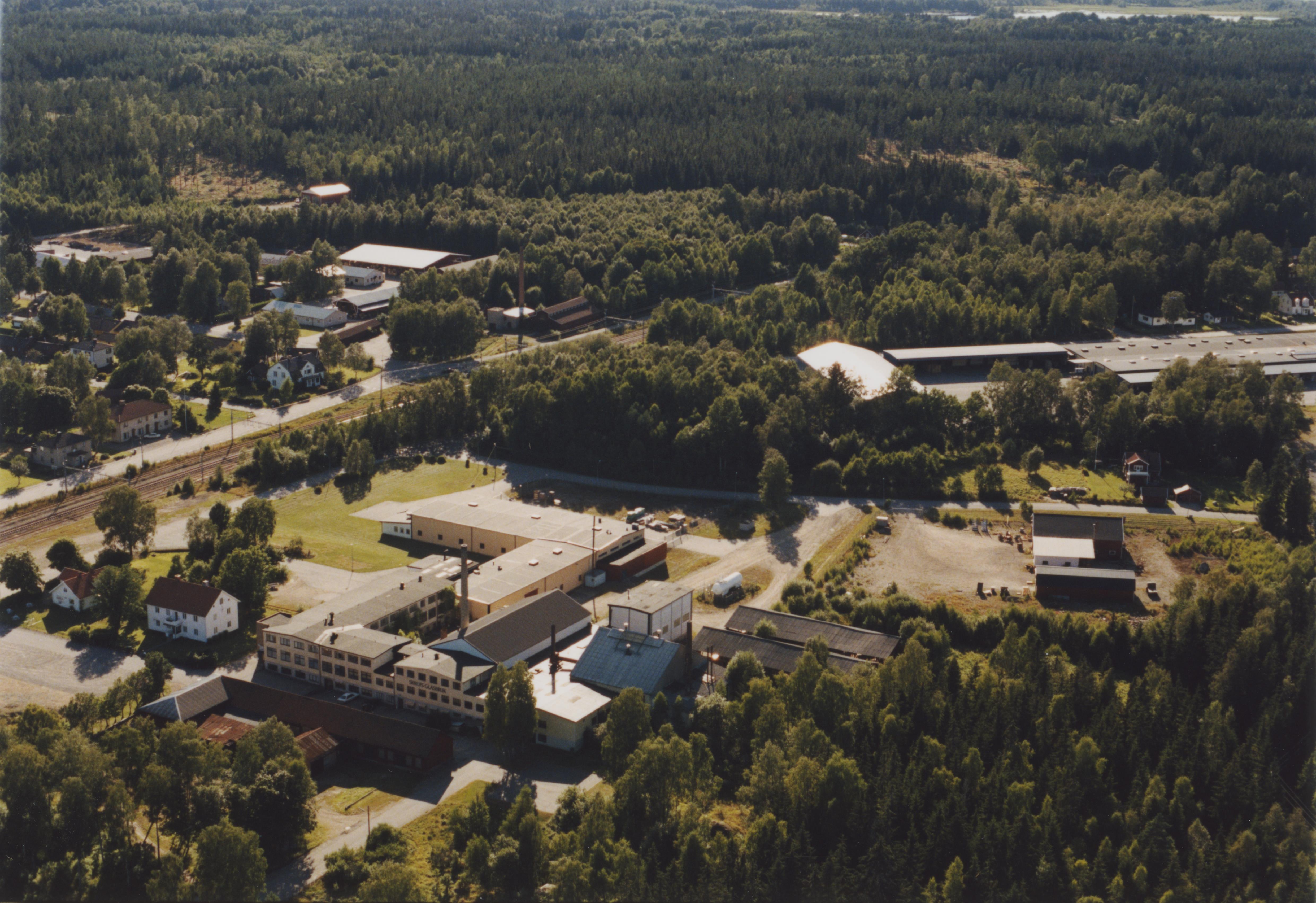 Beskrivning: Skruvs bruksort och järnvägsstation. Vid bildens mitt Skruvs bruk / Skruvs glasbruk. Bilden är tagen mot (väderstreck): SV