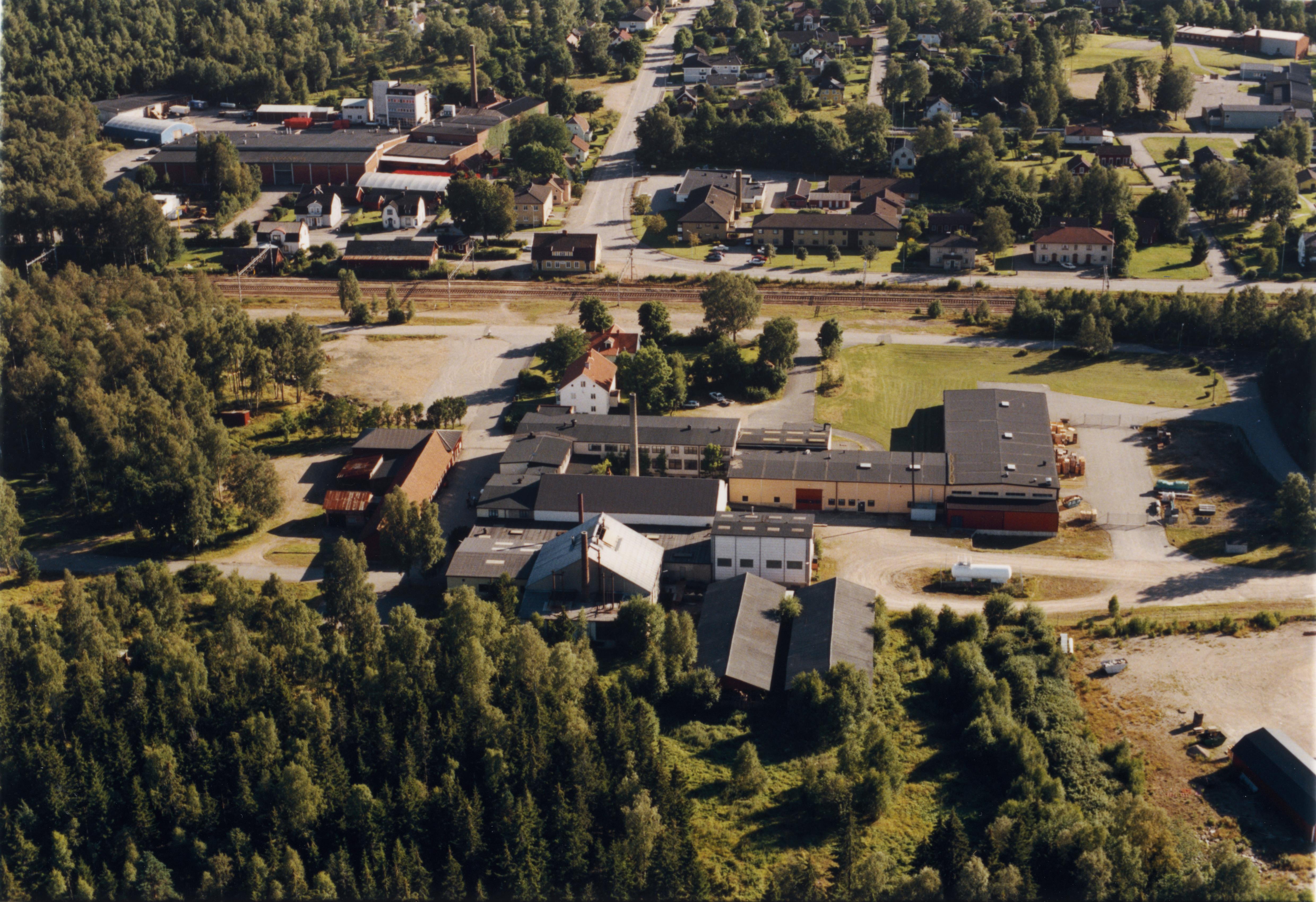 Beskrivning: Skruvs bruksort och järnvägsstation. Vid bildens mitt Skruvs bruk / Skruvs glasbruk. Bilden är tagen mot (väderstreck): SSV