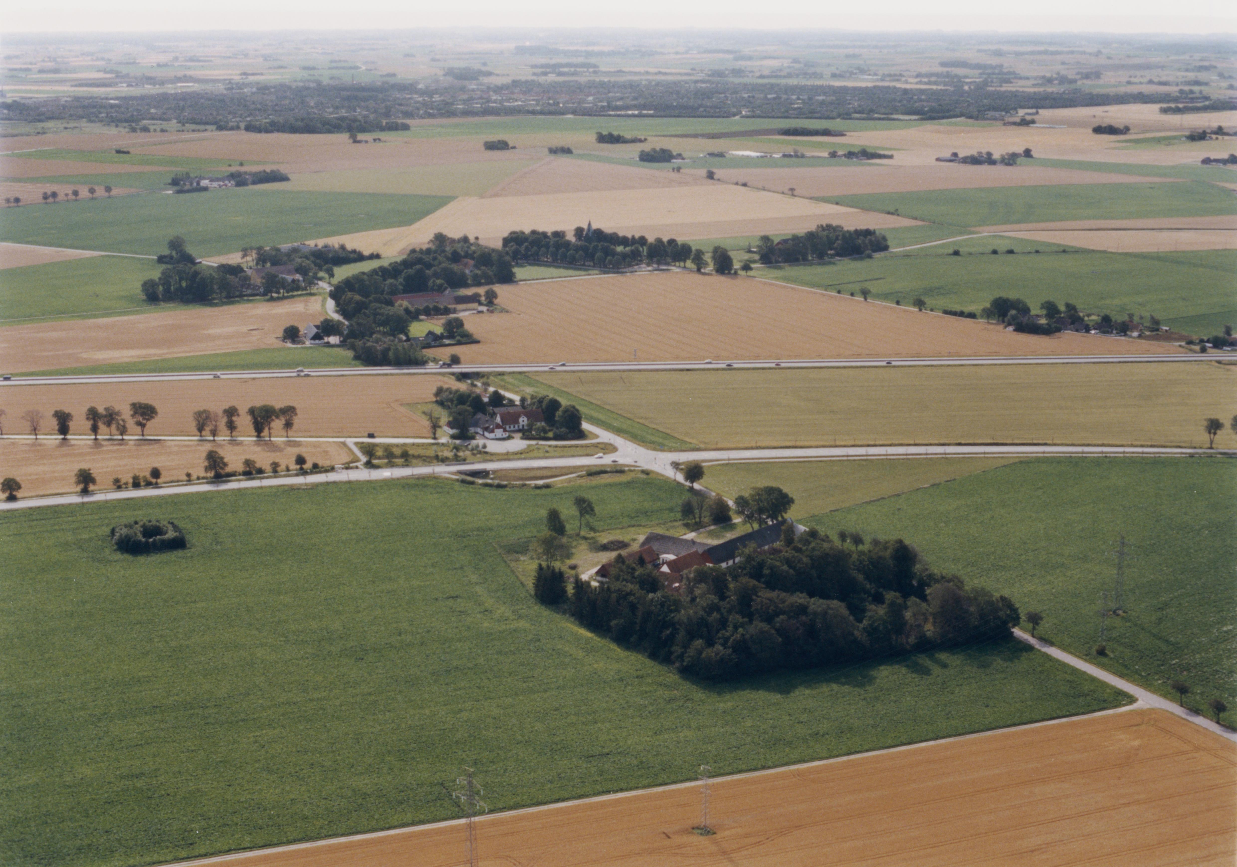 Beskrivning: Uppåkra gård nere till höger. Boplats Uppåkra 49 och 17:1 vid bildens mitt. Bilden är tagen mot (väderstreck): Ö