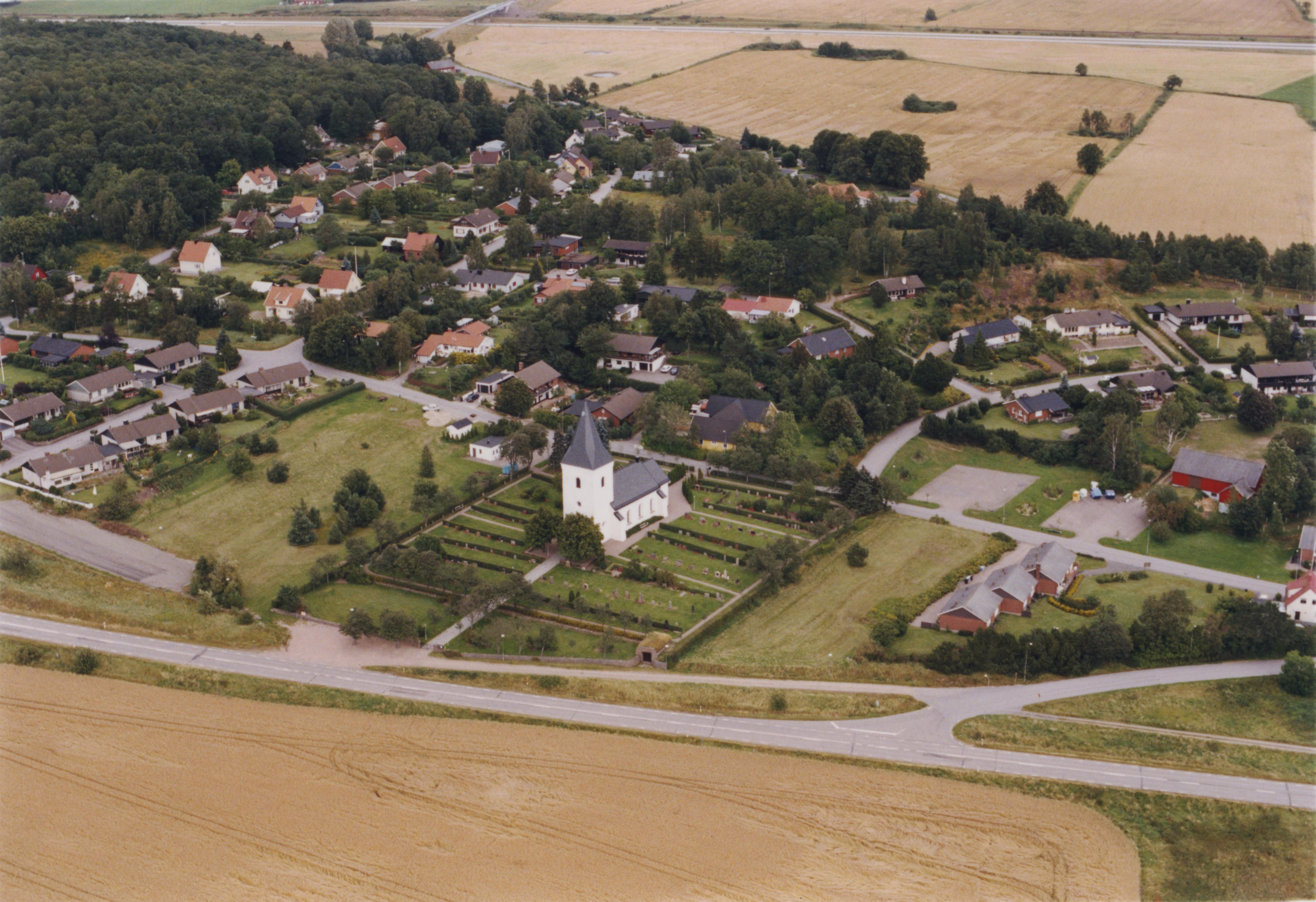 Beskrivning: Tätorten Holm. Holms kyrka. Bilden är tagen mot (väderstreck): NO