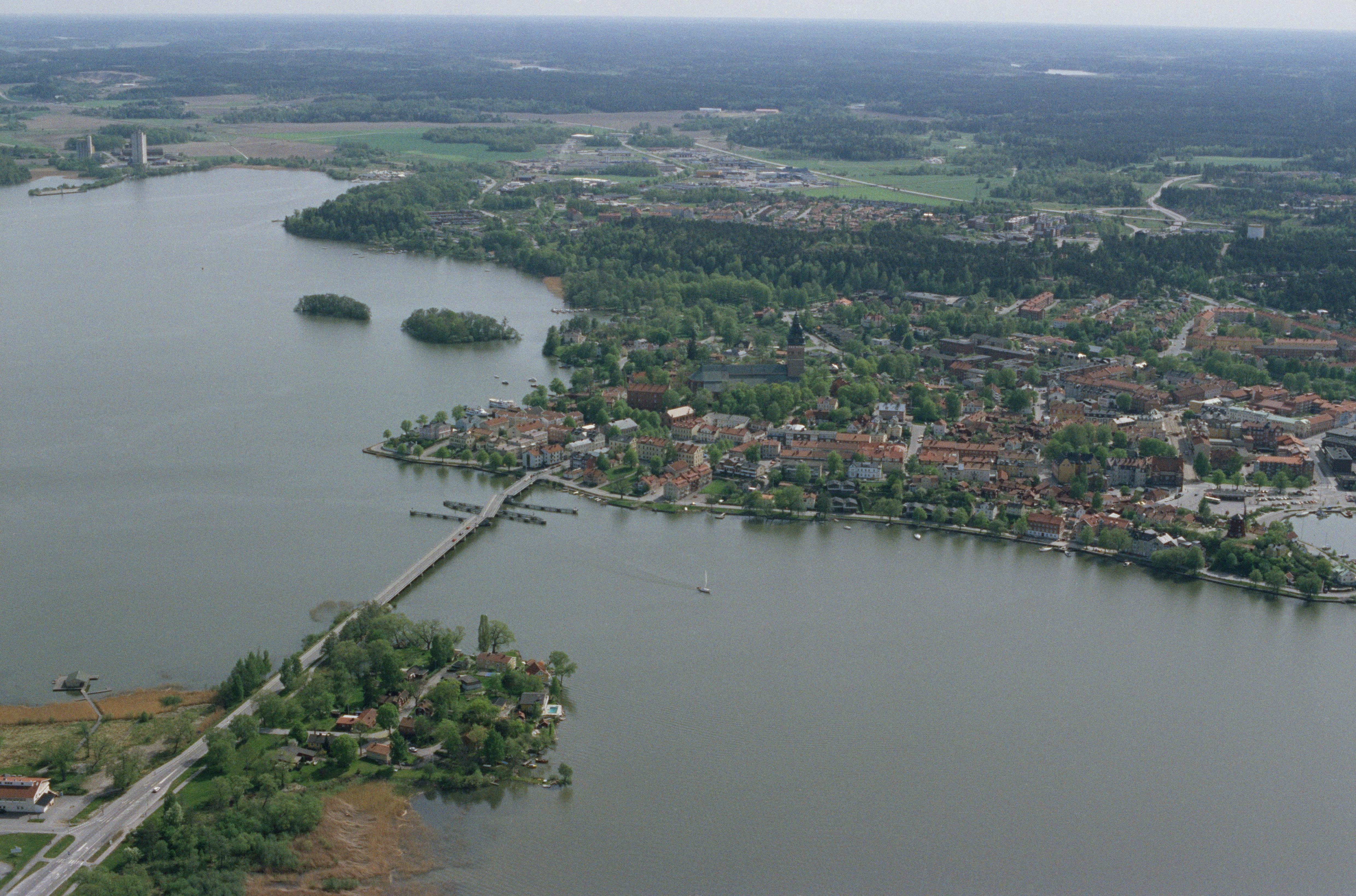 Beskrivning: Strängnäs stad. Strängnäs domkyrka vid bildens mitt. Bilden är tagen mot (väderstreck): SSO