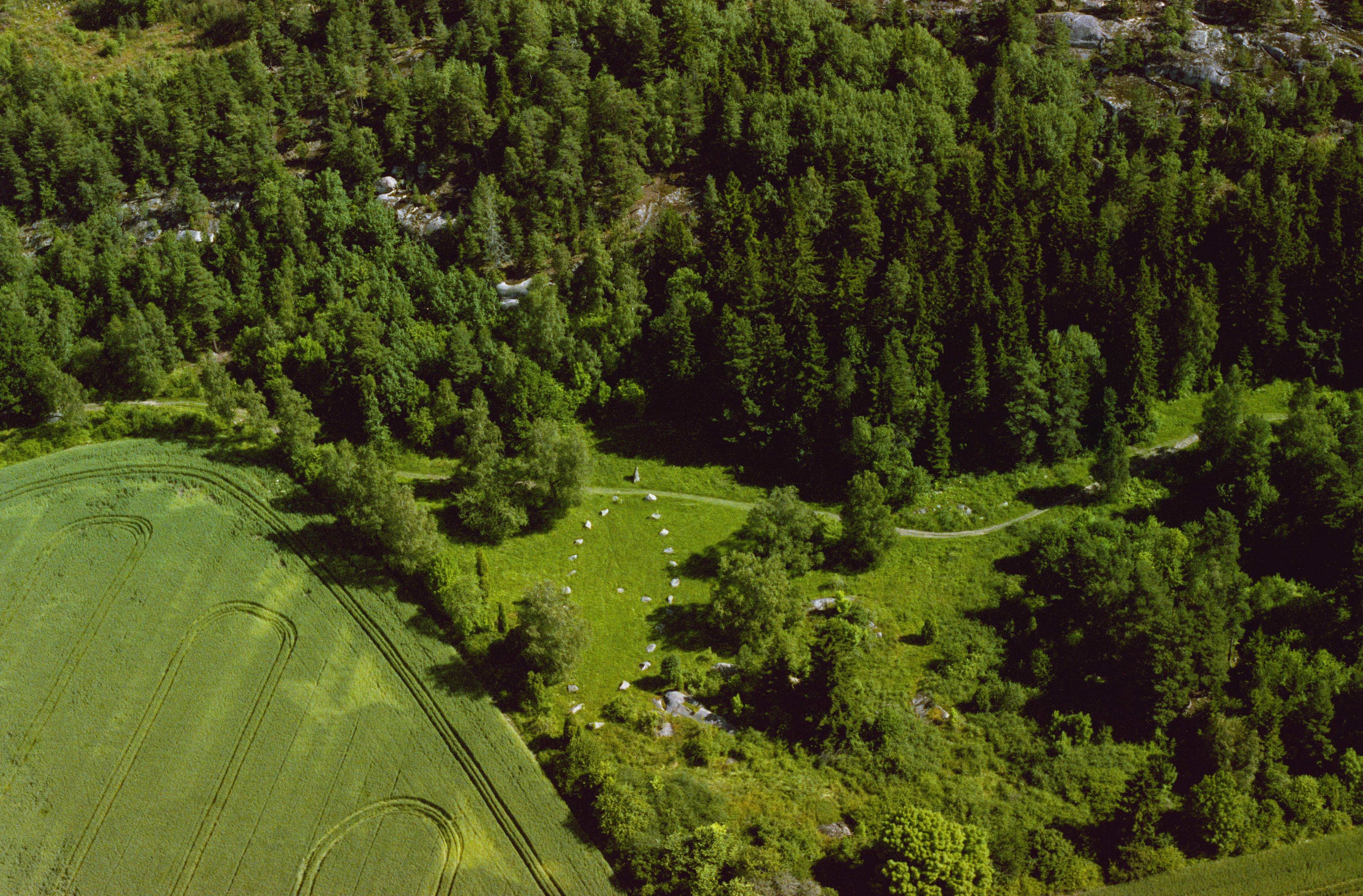 Beskrivning: Anmärkning (övrig): Riksintresse-nr/namn: AB72 - Runsa. Socken: Ed. Motivering: Herrgårdslandskap med ursprung i en stormannagård från yngre järnåldern, vid strategiskt läge mellan flera viktiga vattenleder in mot Uppsala och med en herrgårdsanläggning som speglar högadelns levnadsförhållanden under främst stormaktstiden. (Fornlämningsmiljö). - Uttryck för riksintresset: Farledsanknuten fornborg med ovanligt kraftiga stenvallar, husgrundsterrasser och ett par gravfält med stora gravanläggningar, bl.a. en "kungshög" och en stor skeppssättning. Runsa herrgård med huvudbyggnad från 1663-73 ritad av J de la Vallée, park och ekonomibyggnader. Det av godsdriften präglade landskapet med stora, öppna odlingsmarker, al(…) Texten i detta fält har förkortats vid migrering till e-arkivet. Se filbilagan extra.xml för fullständig information under note_archivist. Beskrivning: Runsa gravfält med skeppssättning RAÄnr Ed 1:1. Bilden är tagen mot (väderstreck): NO Fotosyfte: Flygbildsdokumentation
