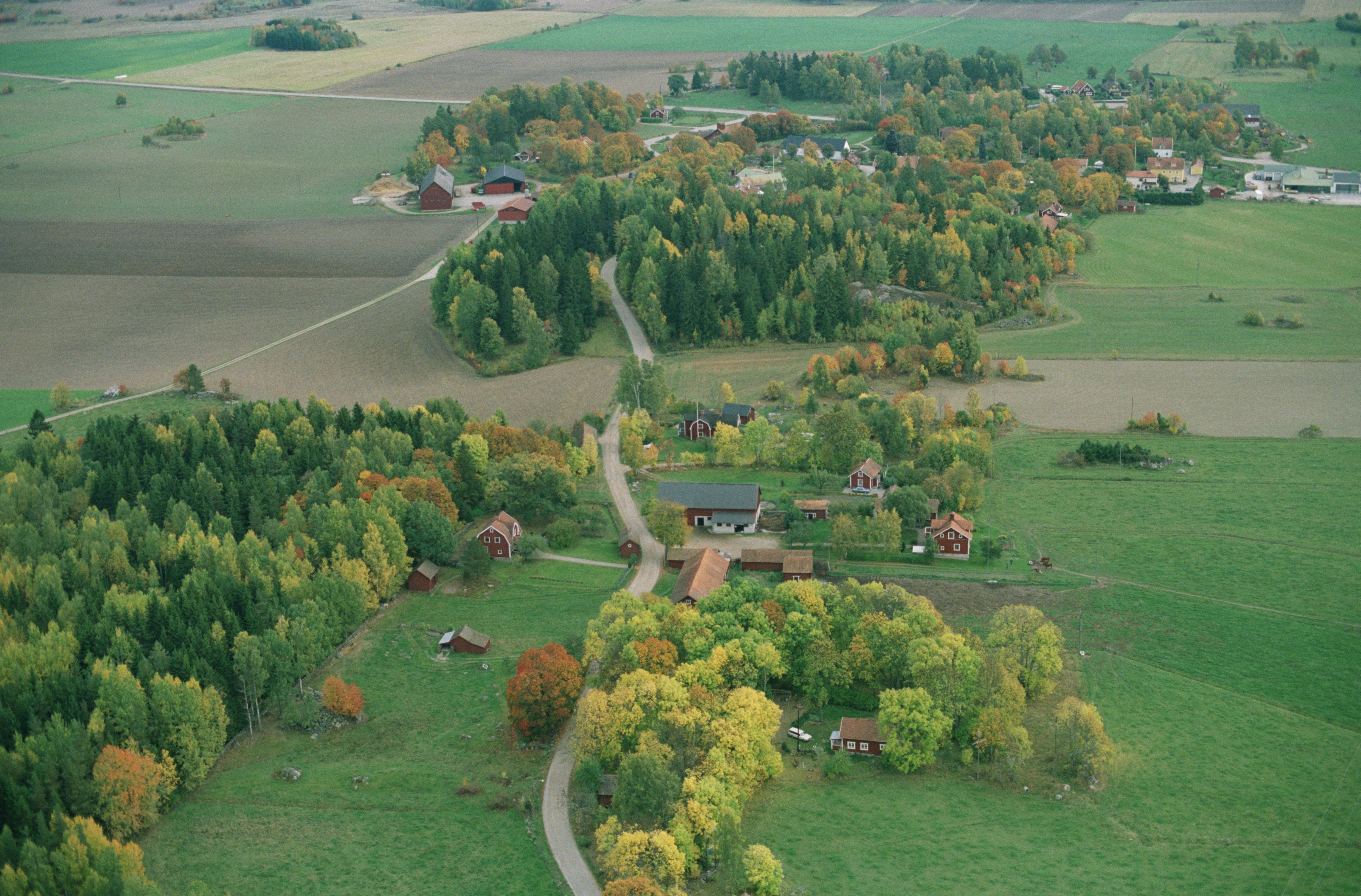 Beskrivning: Råby gård i bildens nedre del. Uppe till vänster Malmberga gård och till höger Västermo kyrka. Bilden är tagen mot (väderstreck): SSO