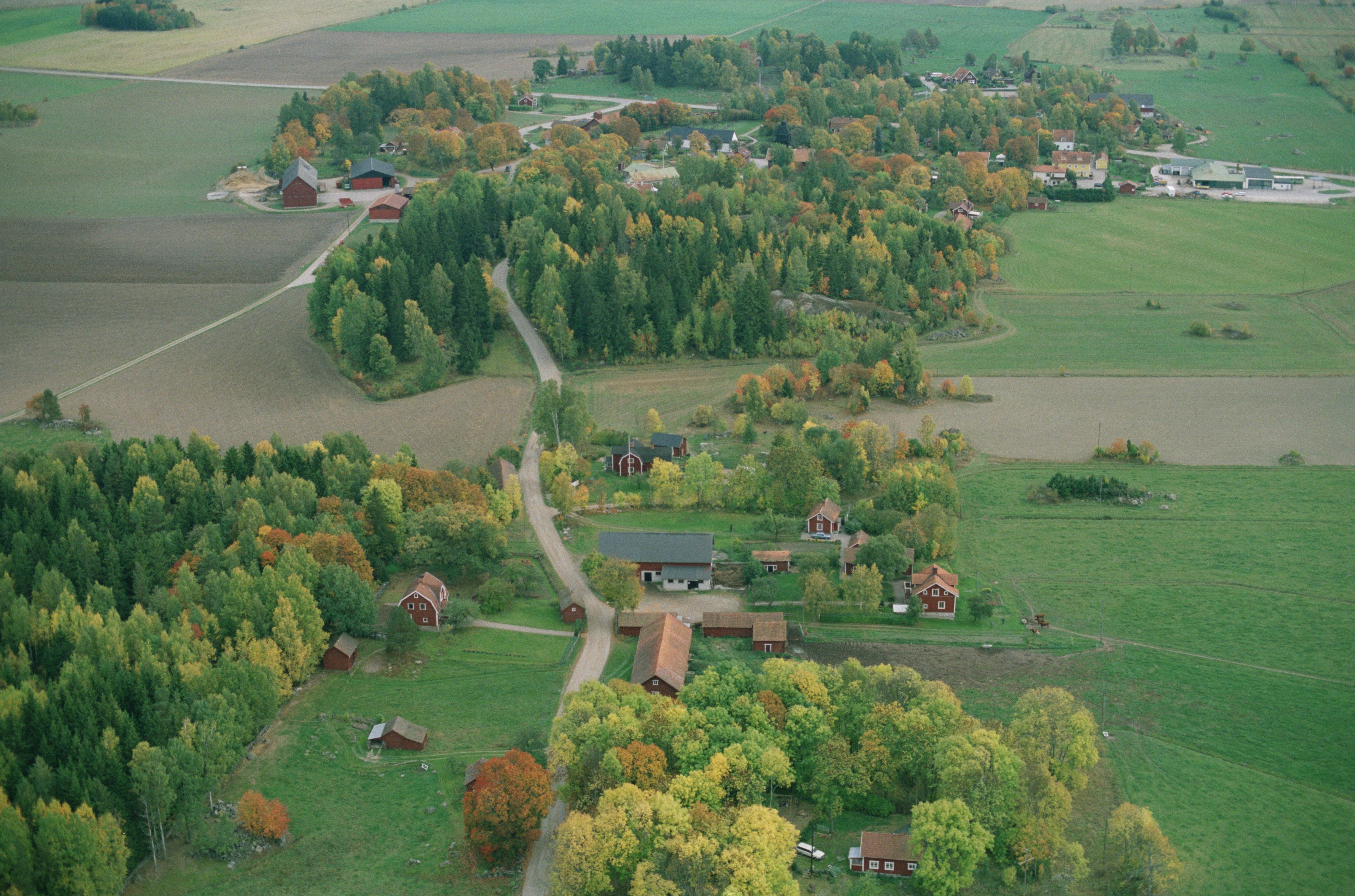 Beskrivning: Råby gård i bildens nedre del. Uppe till vänster Malmberga gård och till höger Västermo kyrka. Bilden är tagen mot (väderstreck): SSO