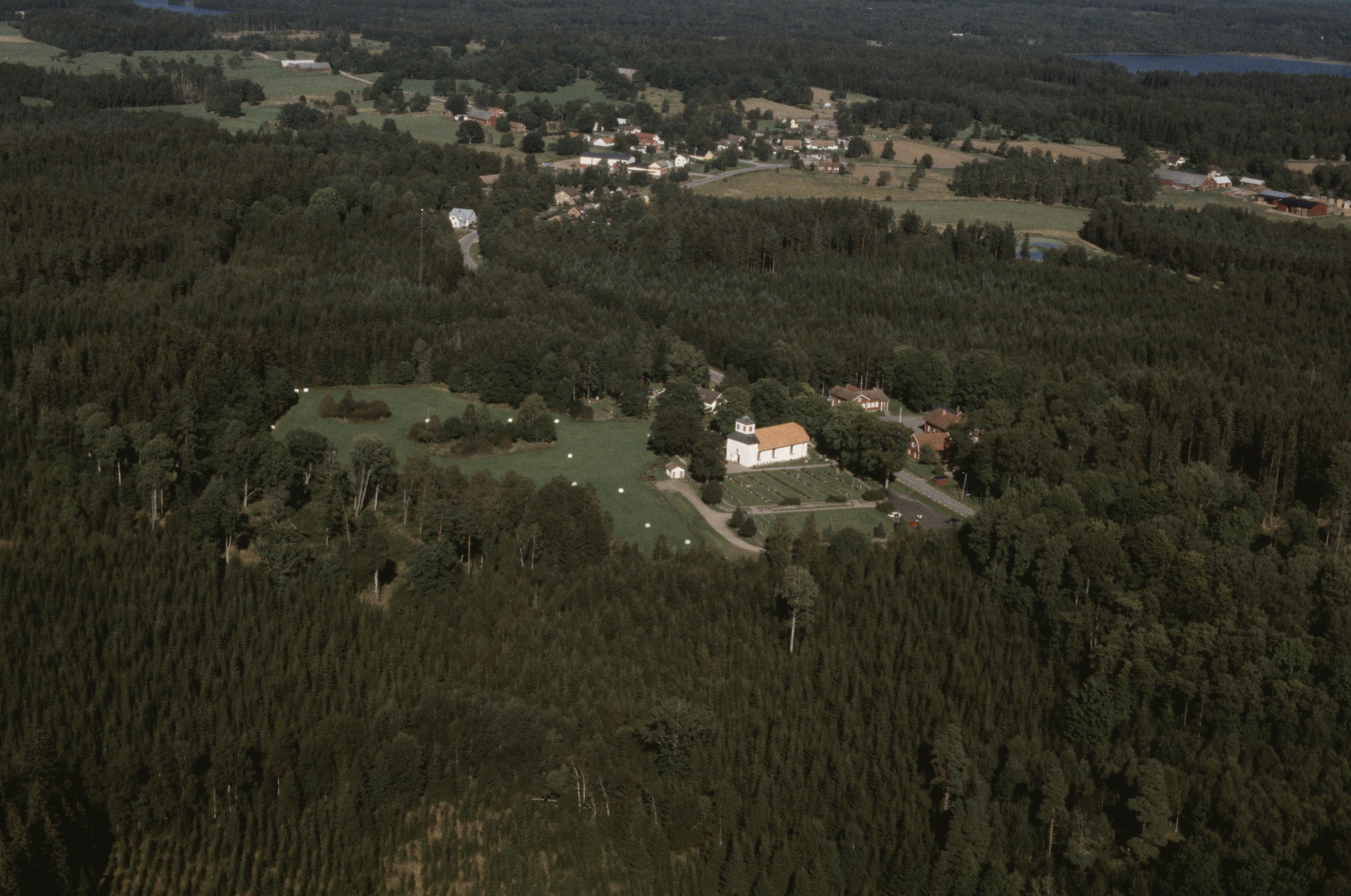 Beskrivning: Dannäs kyrka. Törnestorp i bildens övre del. Bilden är tagen mot (väderstreck): NO
