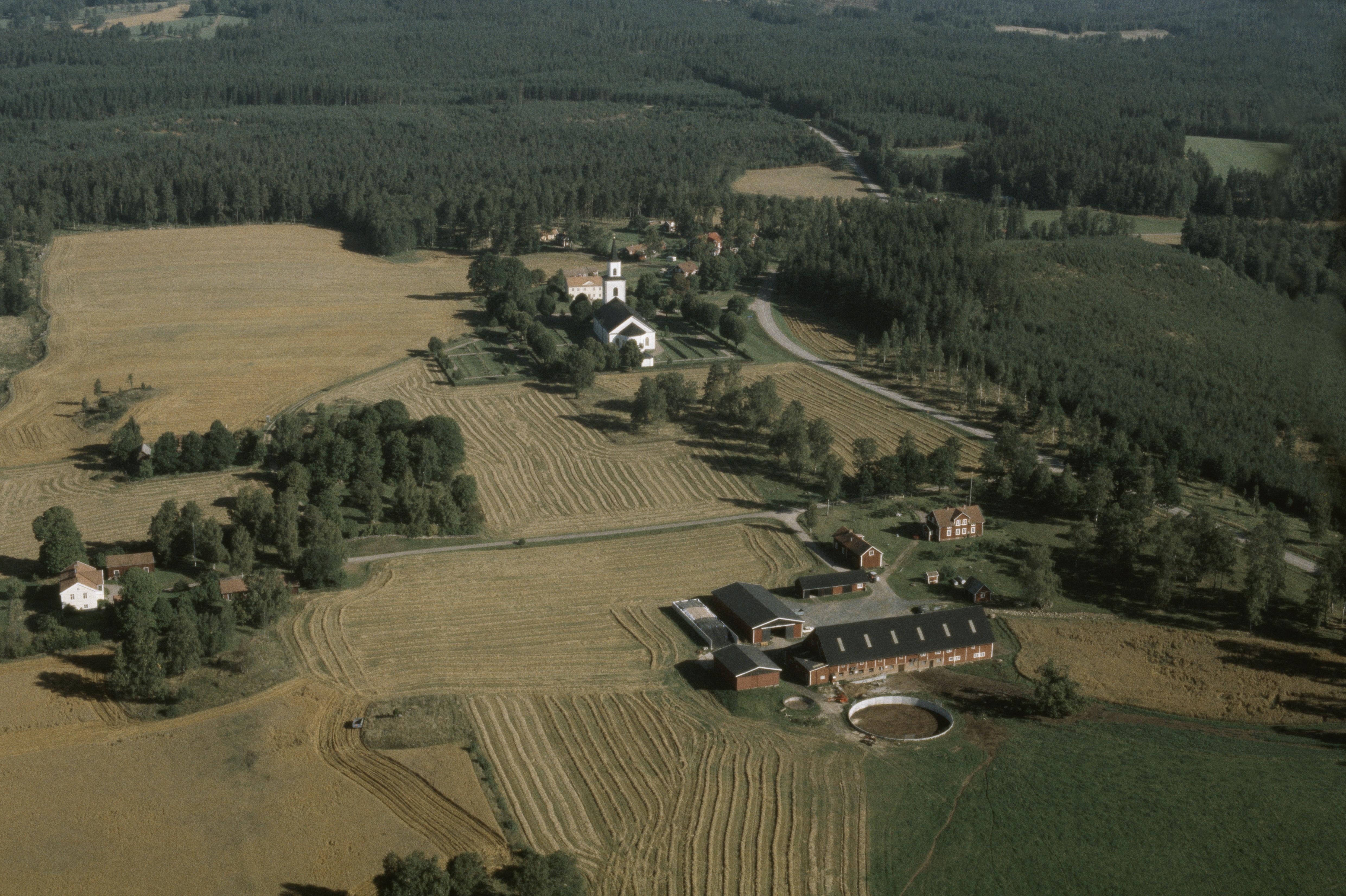 Beskrivning: Flisby kyrka och kyrkby. Bilden är tagen mot (väderstreck): N