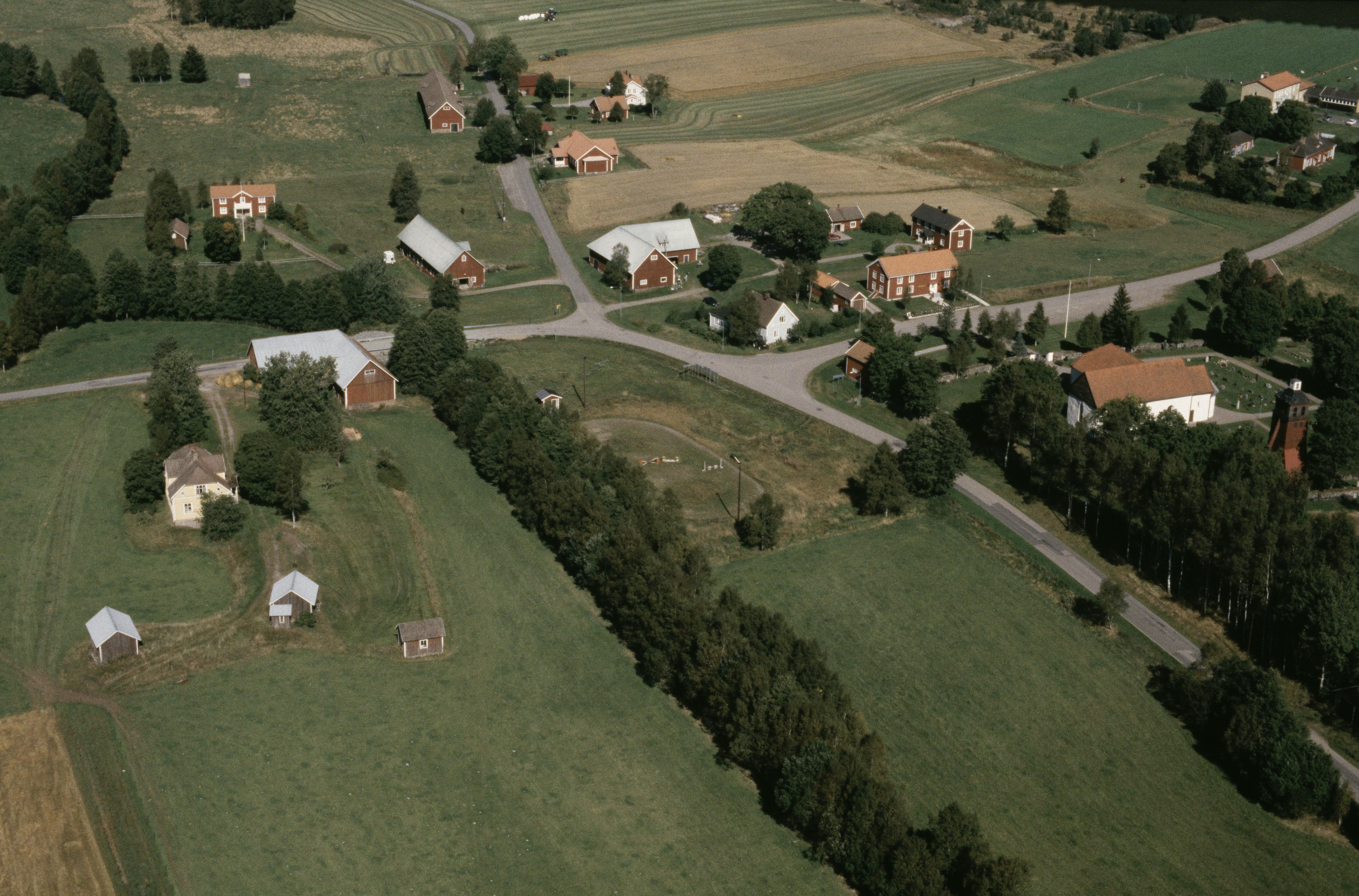 Beskrivning: Bringetofta kyrka och kyrkby. Bilden är tagen mot (väderstreck): NNO