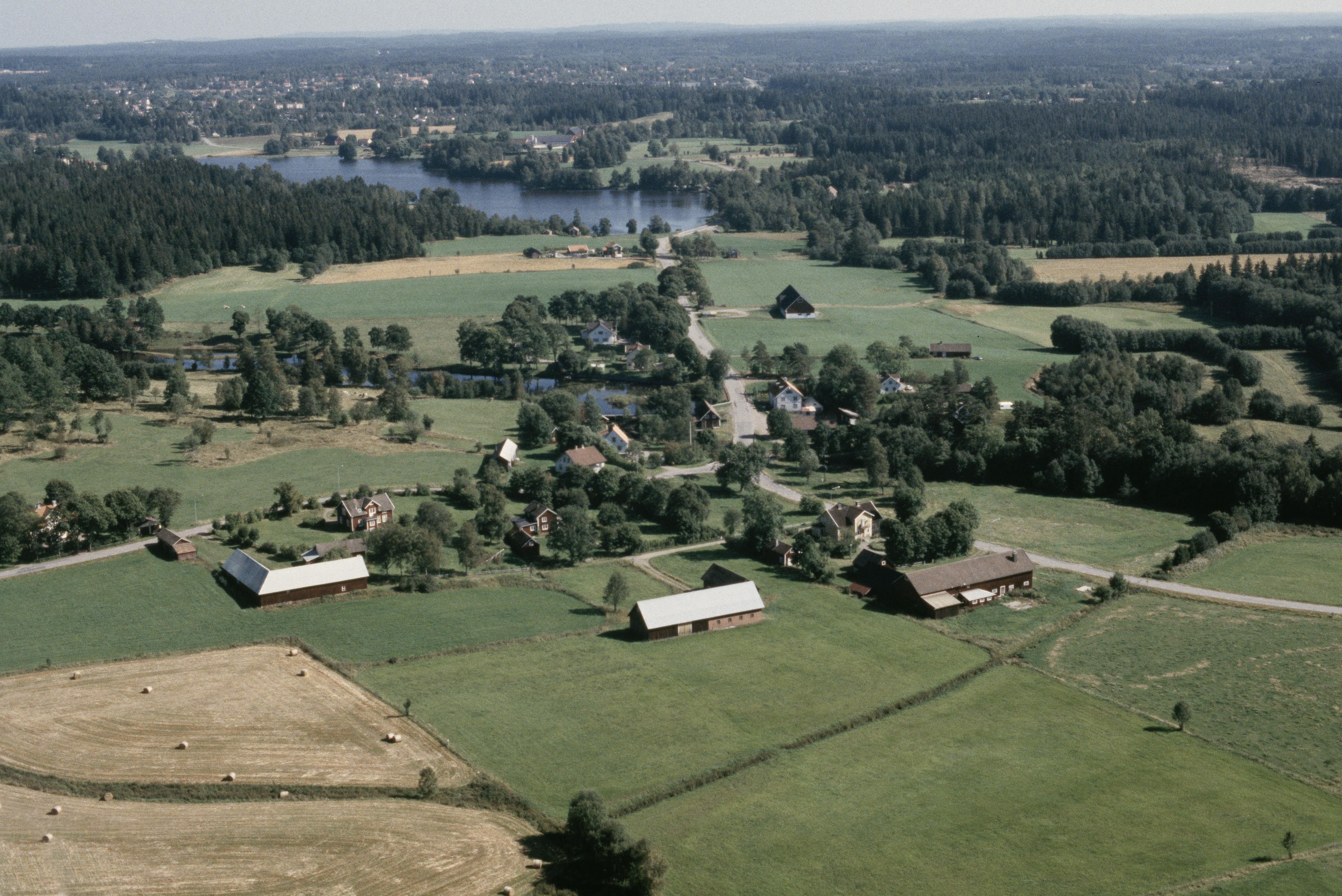 Beskrivning: Anmärkning (övrig): Riksintresse-nr/namn: F19 ? Komstad. Socken: Sävsjö <Vallsjö>. Motivering: Bymiljö och f.d. häradscentrum för Västra härad. (Kvarnmiljö, Tidigindustriell miljö). - Uttryck för riksintresset: Delvis utskiftad bykärna med manbyggnader från tiden 1850-1921 och odlingslandskap med bevarade ängs- och slåttermarker. Kvarn, ram- och cirkelsåg samt kvarnstensgjuteri. F.d. tingsplats (1734 - 1908) med gästgivargård och bevarat häradshäkte samt f.d. tingshus ombyggt till bostad. F.d. affärsbyggnad med välbevarad inredning. - I området ingår även: Ensamliggande fornlämningar i form av hällkistor, större stensättningar, ett röse samt runsten. [Texten uppdaterat av Riksantikvarieämbetet våren 2013.] Beskrivning: Komstads by. (Denna del av Vallsjö socken är nu en del av Sävsjö socken). Bilden är tagen mot (väderstreck): Ö Fotosyfte: Flygbildsdokumentation