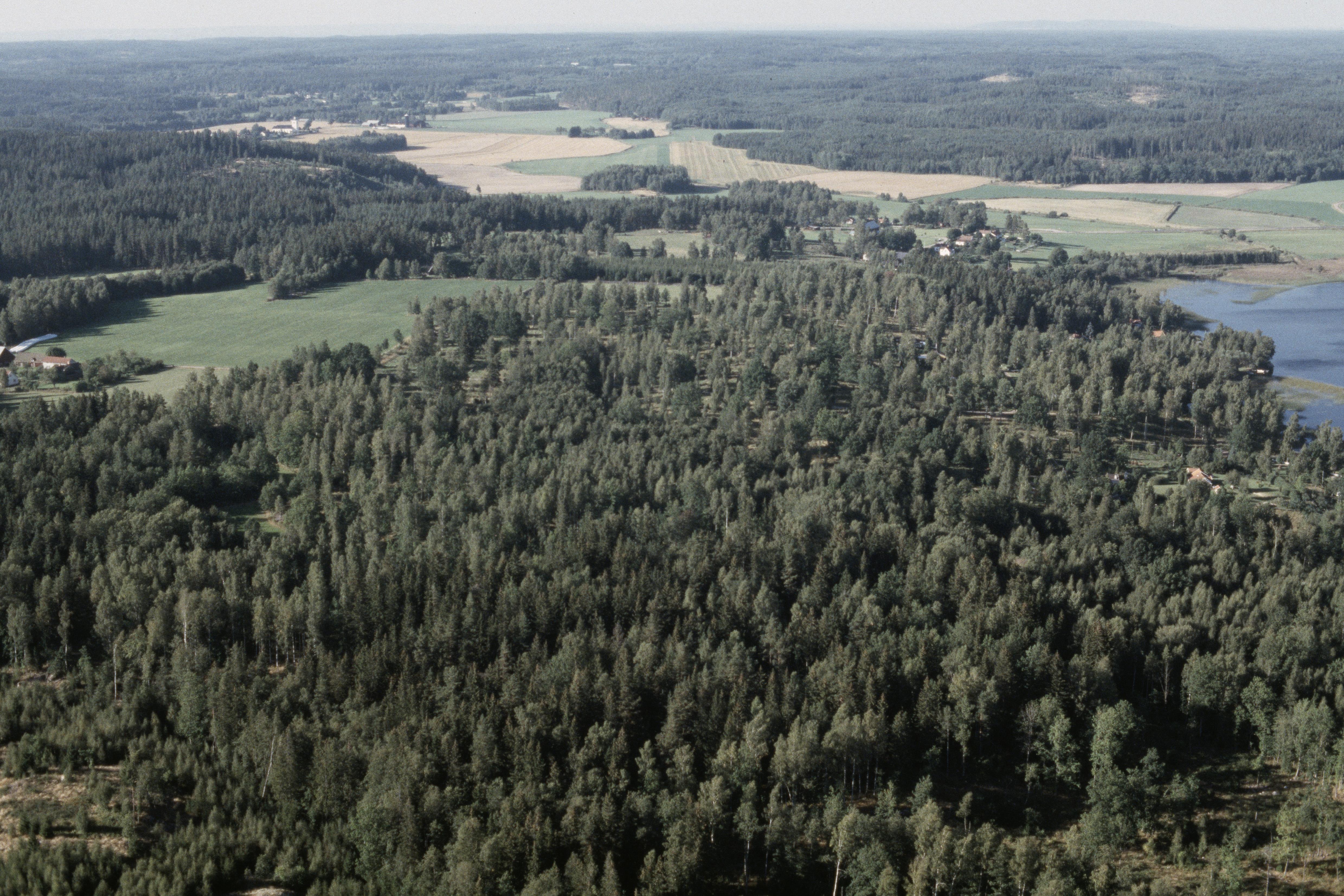 Beskrivning: Vid bildens mitt Vallstorp by vid sjön Noen. I bildens övre del Nostorp. Bilden är tagen mot (väderstreck): N