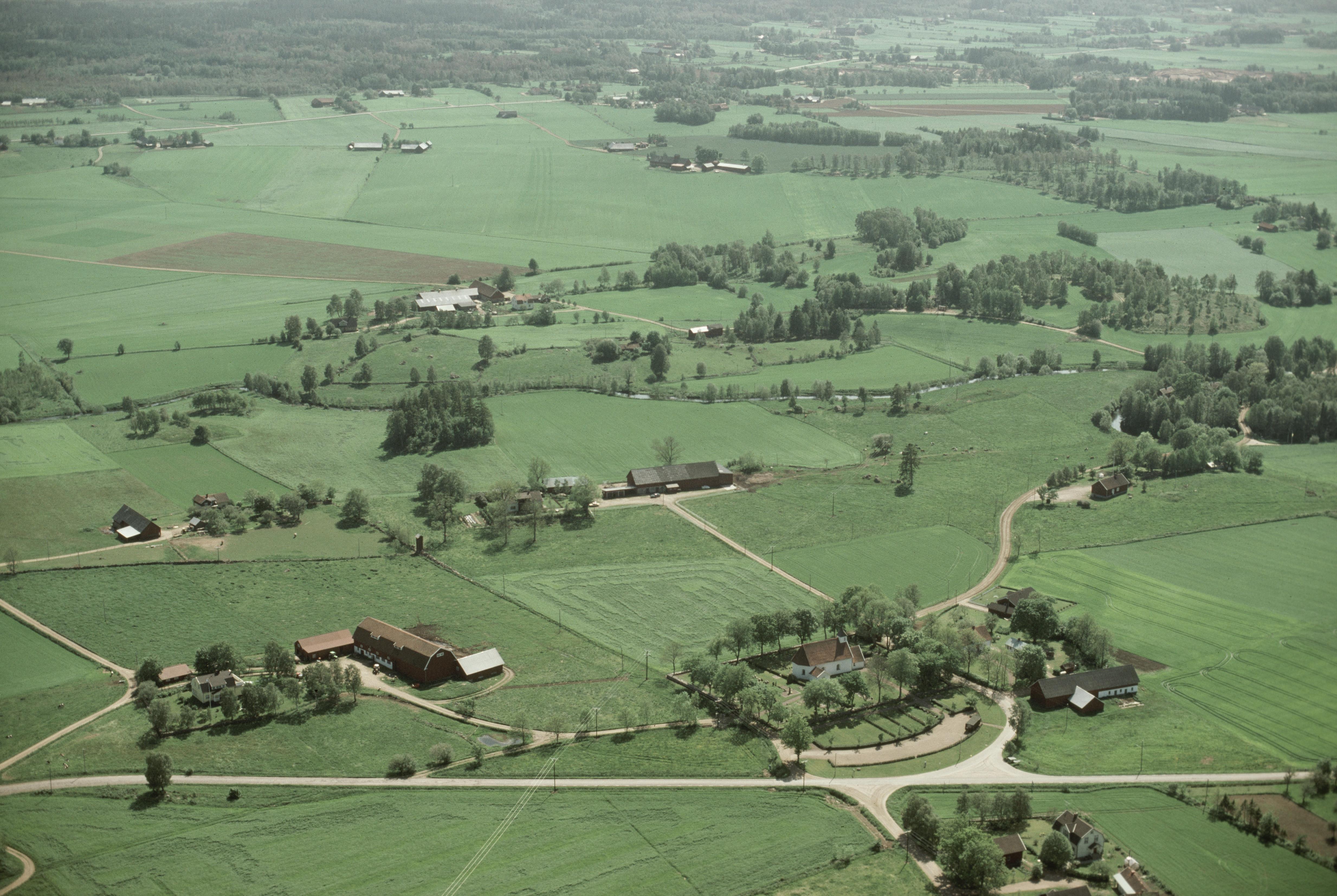 Beskrivning: Fölene kyrka nere till höger. Mossagården och ån Nossan vid bildens mitt. Bilden är tagen mot (väderstreck): SSV