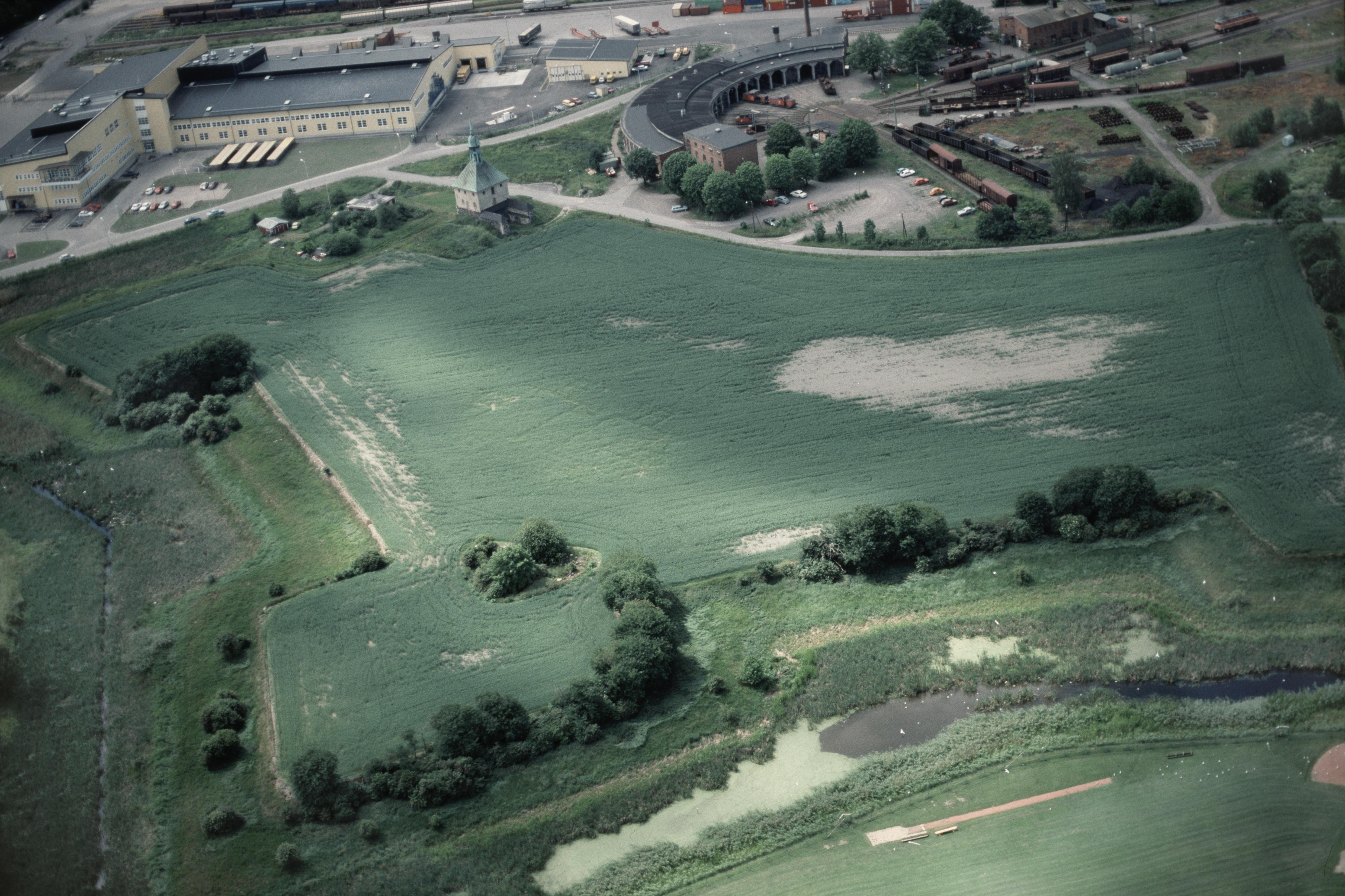 Beskrivning: Befästningsruiner, ursprungligen i regelbunden femuddig stjärnform. Johannisborgs slottsruin RAÄnr Sankt Johannes 51:1. Bilden är tagen mot (väderstreck): SSV
