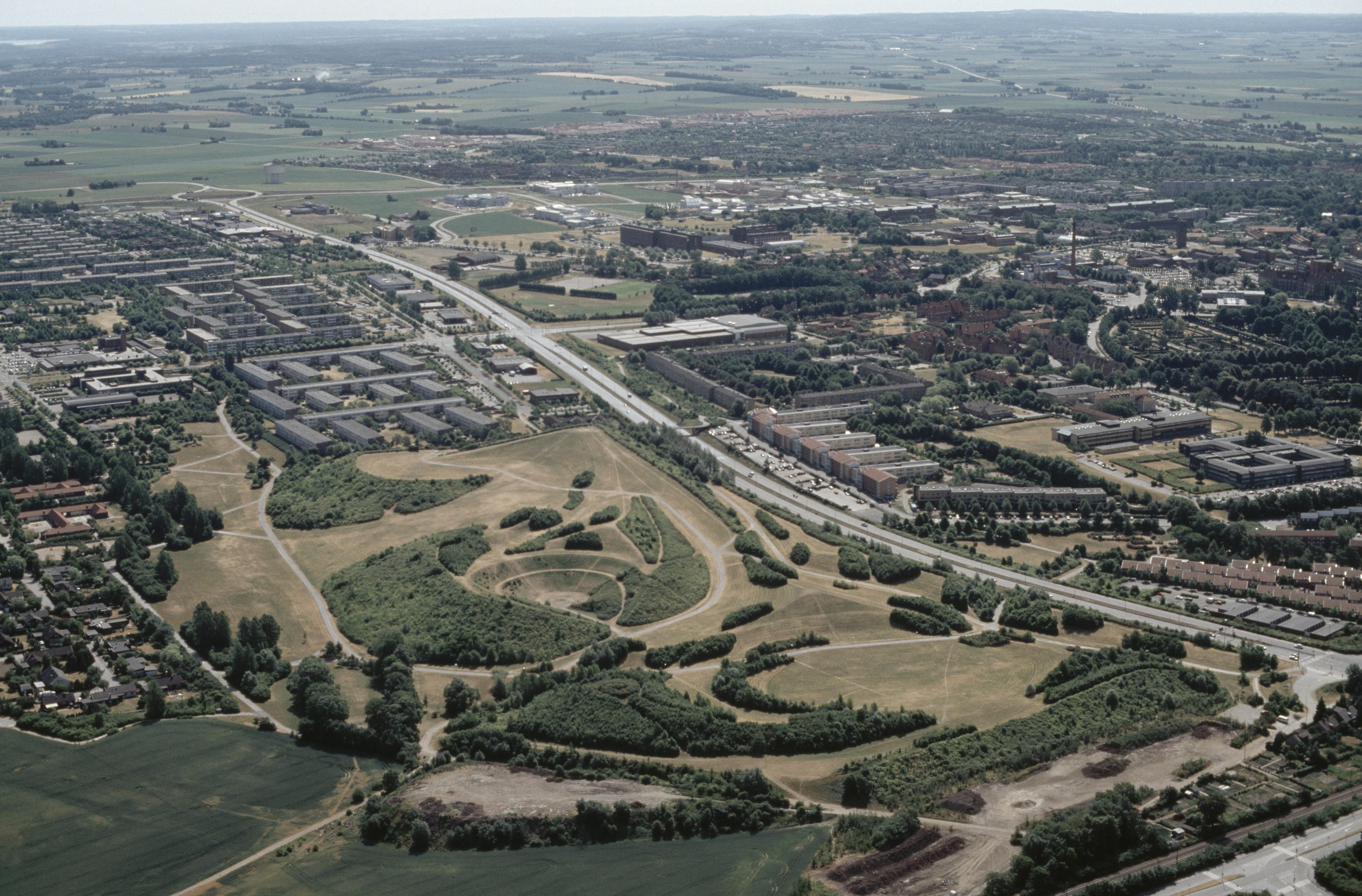 Beskrivning: Monumentparken / Sankt Hans backar i Norra Fäladen / Möllevången vid staden Lund. Bilden är tagen mot (väderstreck): SO