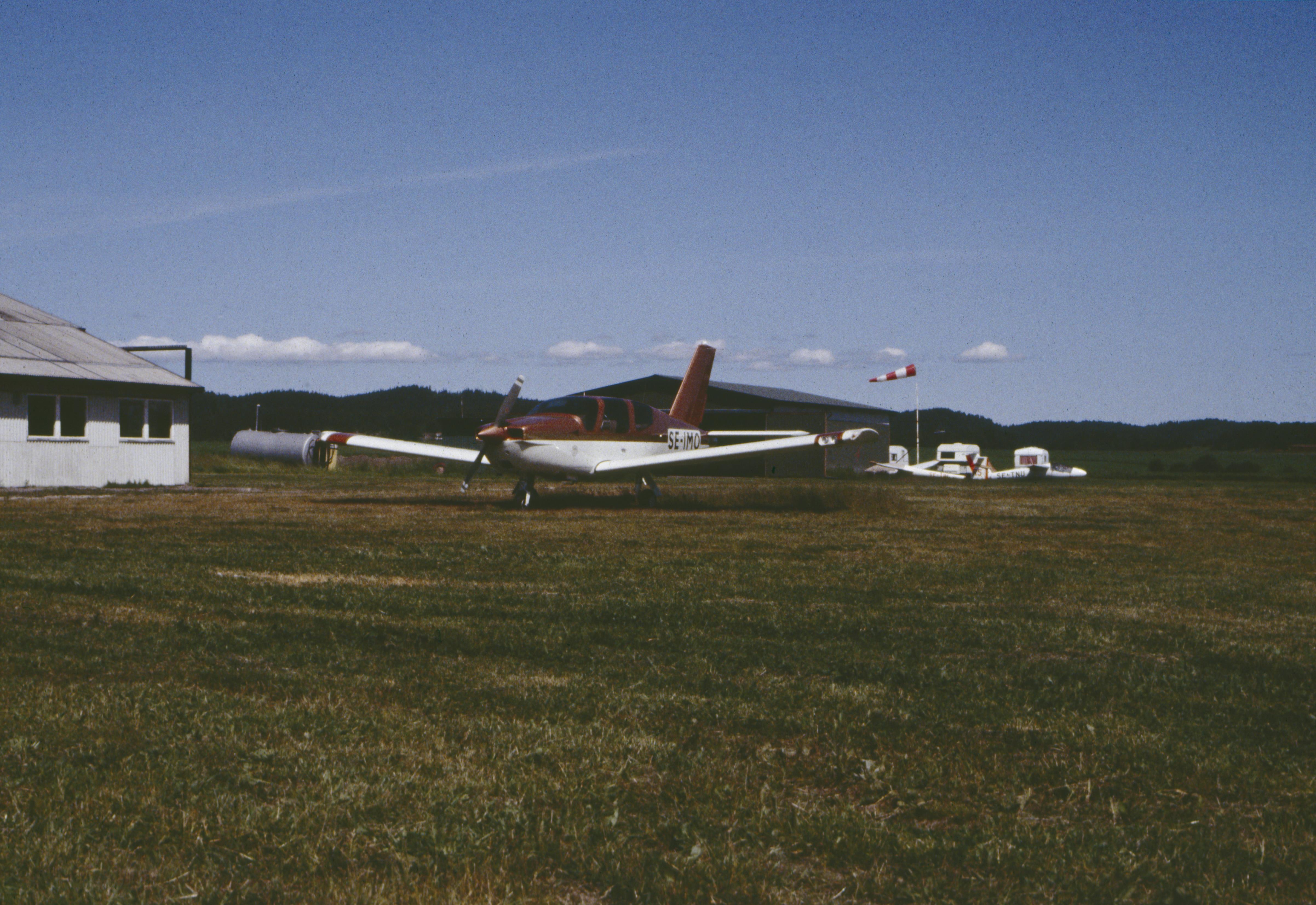 Beskrivning: Alingsås flygfält (med grässtråk) i Vallen, c:a 3 km norost om Alingsås stad. (NB! Ej flygbild, men markbild som visar aktiviteter på flygfältet). Bilden är tagen mot (väderstreck): N