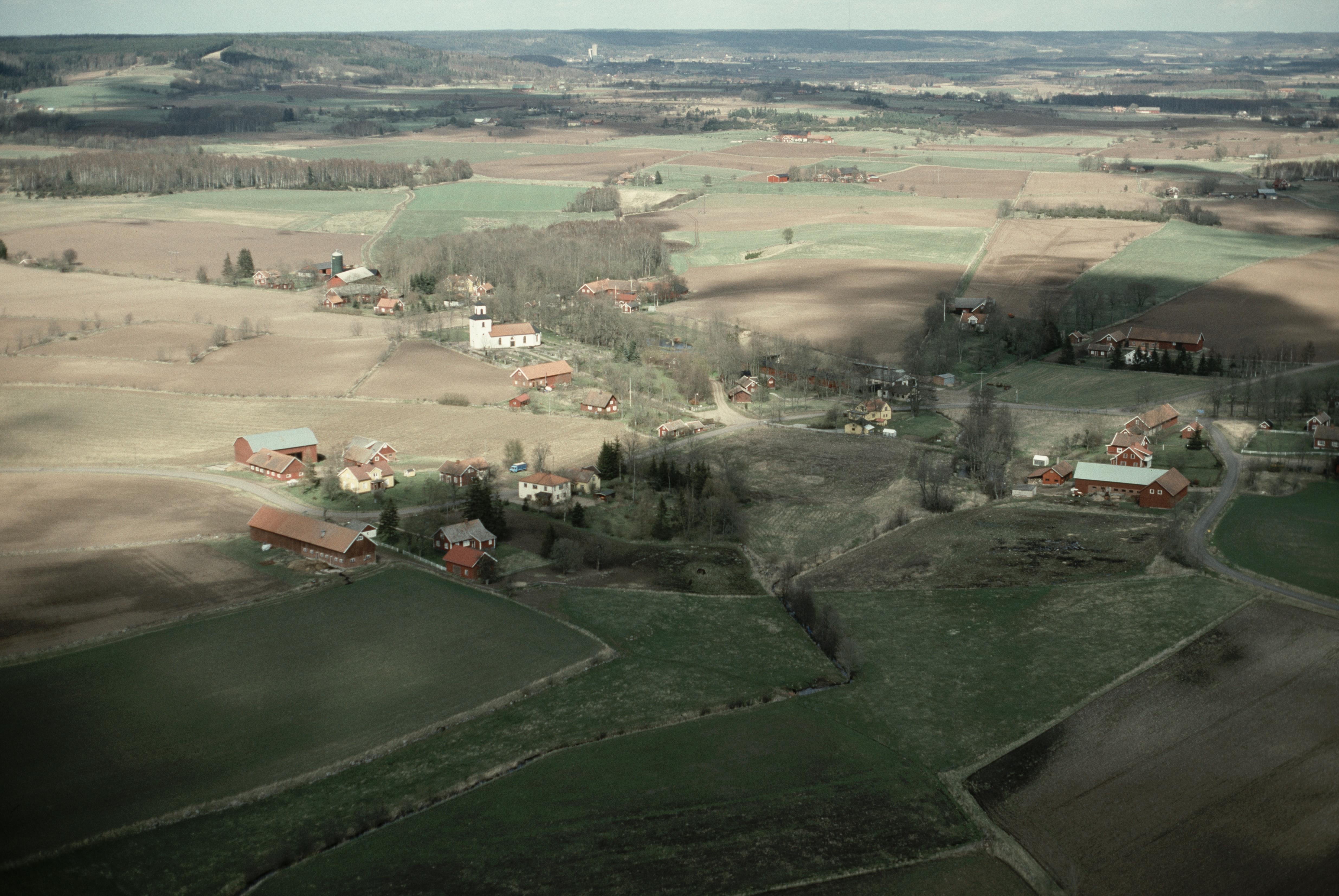 Beskrivning: Segerstads kyrka till vänster över bildens mitt. Bilden är tagen mot (väderstreck): NV
