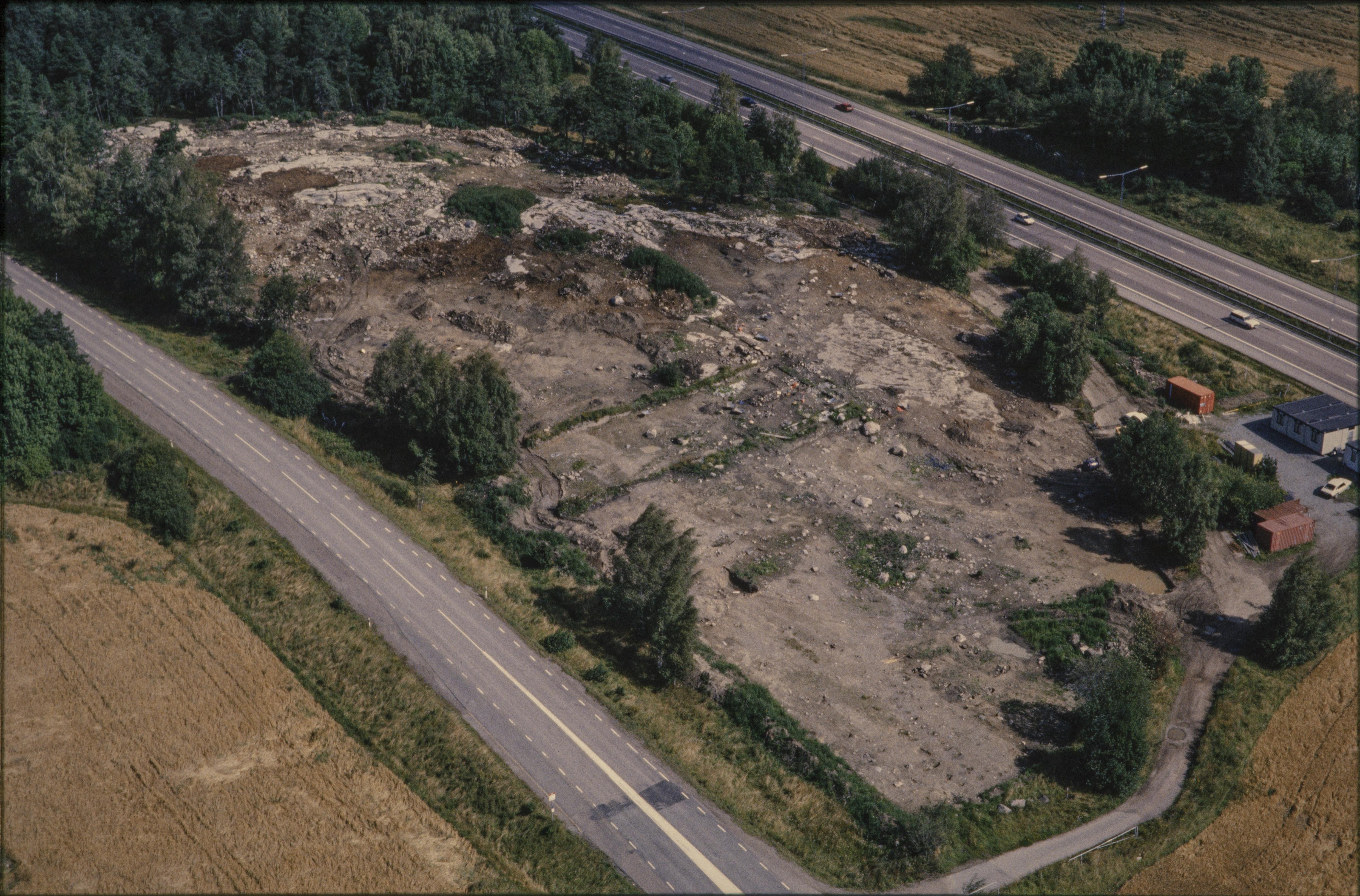 Beskrivning: Anmärkning (övrig): Riksintresse-nr/namn: AB71b - Skålhamravägen. Socken: delen i Skånela och Norrsunda socknar. Motivering: Centralbygd, herrgårdslandskap och vägsystem, med rötter i en forntida stormannabygd med anknytning till kungamakten. Landskapet speglar en rik och komplex järnåldersbygd och dess fortsatta utveckling genom den tidiga medeltidens sockenbildning och 1600-talets säterier, med kontinuitet fram i dagens agrarlandskap. (Fornlämningsmiljö). - Uttryck för riksintresset: Rika järnålderslämningar i form av bl.a. äldre vägsträckningar, många runristningar, flera i urprungligt läge, stensträngssystem och gravfält i anslutning till byar och gårdar. Uttryck för ett kungligt inflytande, som Nordians h(…) Texten i detta fält har förkortats vid migrering till e-arkivet. Se filbilagan extra.xml för fullständig information under note_archivist. Beskrivning: Östra delen av Rosersberg. Arkeologisk undersökning av gravfält Norrsunda 57:1 innan bygge av järnväg (Arlandabanan). Bilden är tagen mot (väderstreck): NO Fotosyfte: Flygbildsdokumentation