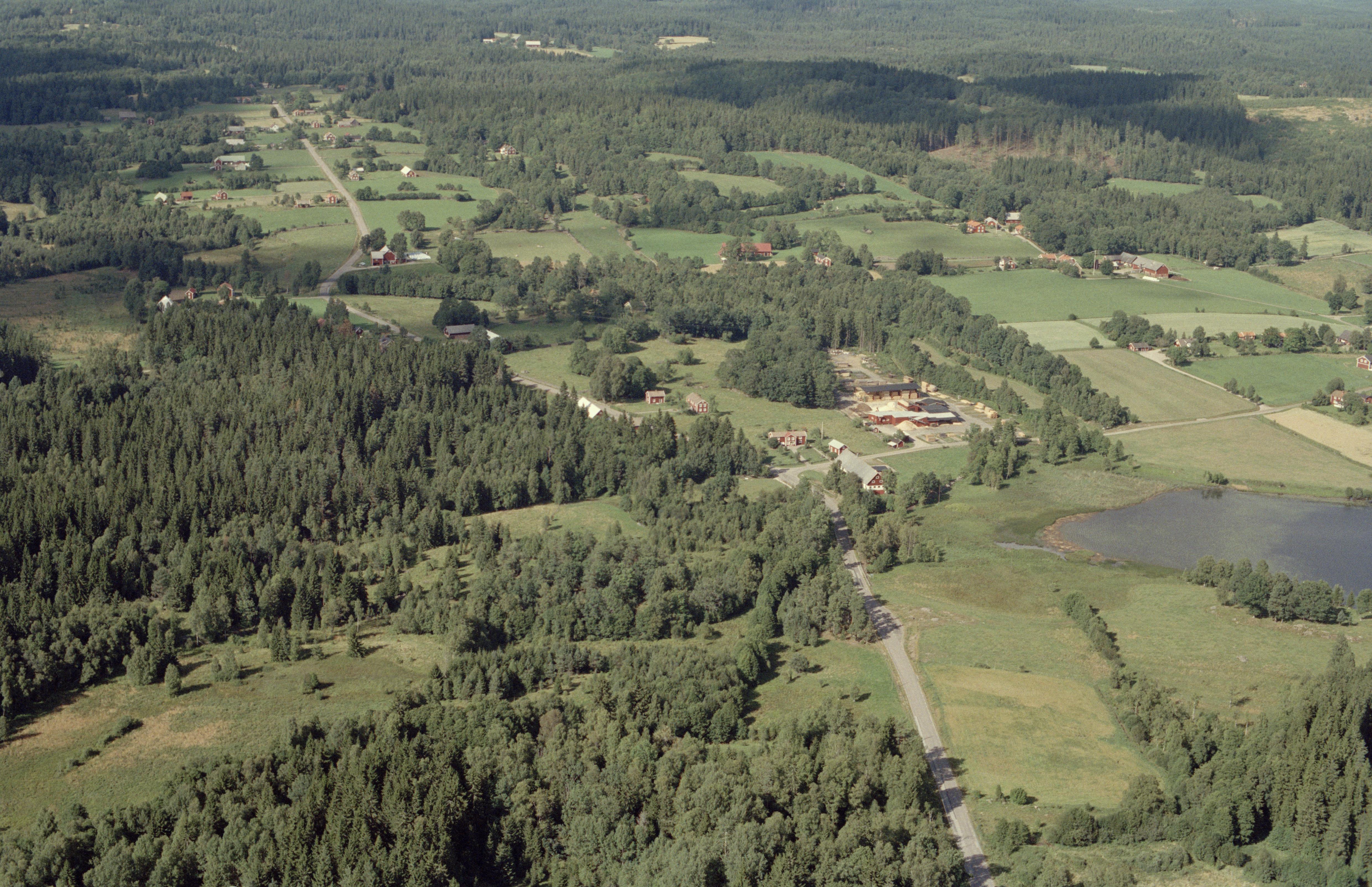 Beskrivning: Östra Lädja by vid Lädjasjön. Bro RAÄnr Berg 183:1 och grav Berg 5:1 vid bildens mitt. Bilden är tagen mot (väderstreck): NNV