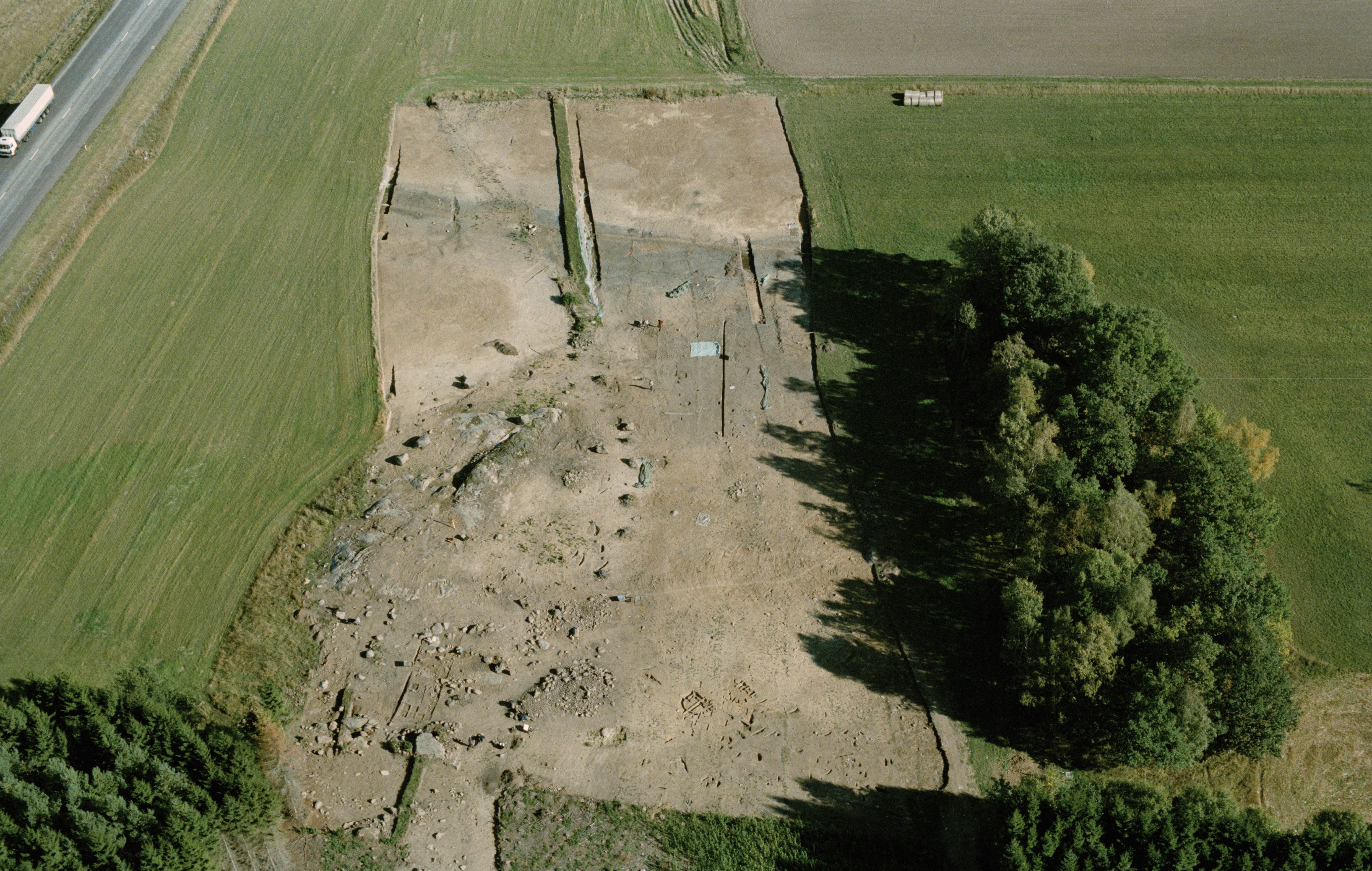 Beskrivning: Arkeologisk undersökning innan väg E4 byggs vid Väderstad. Boplatser RAÄnr Rinna 288:1-3, 308 och 315 m.fl. vid Abbetorp på gränsen mot socknet Väderstad. Bilden är tagen mot (väderstreck): NO