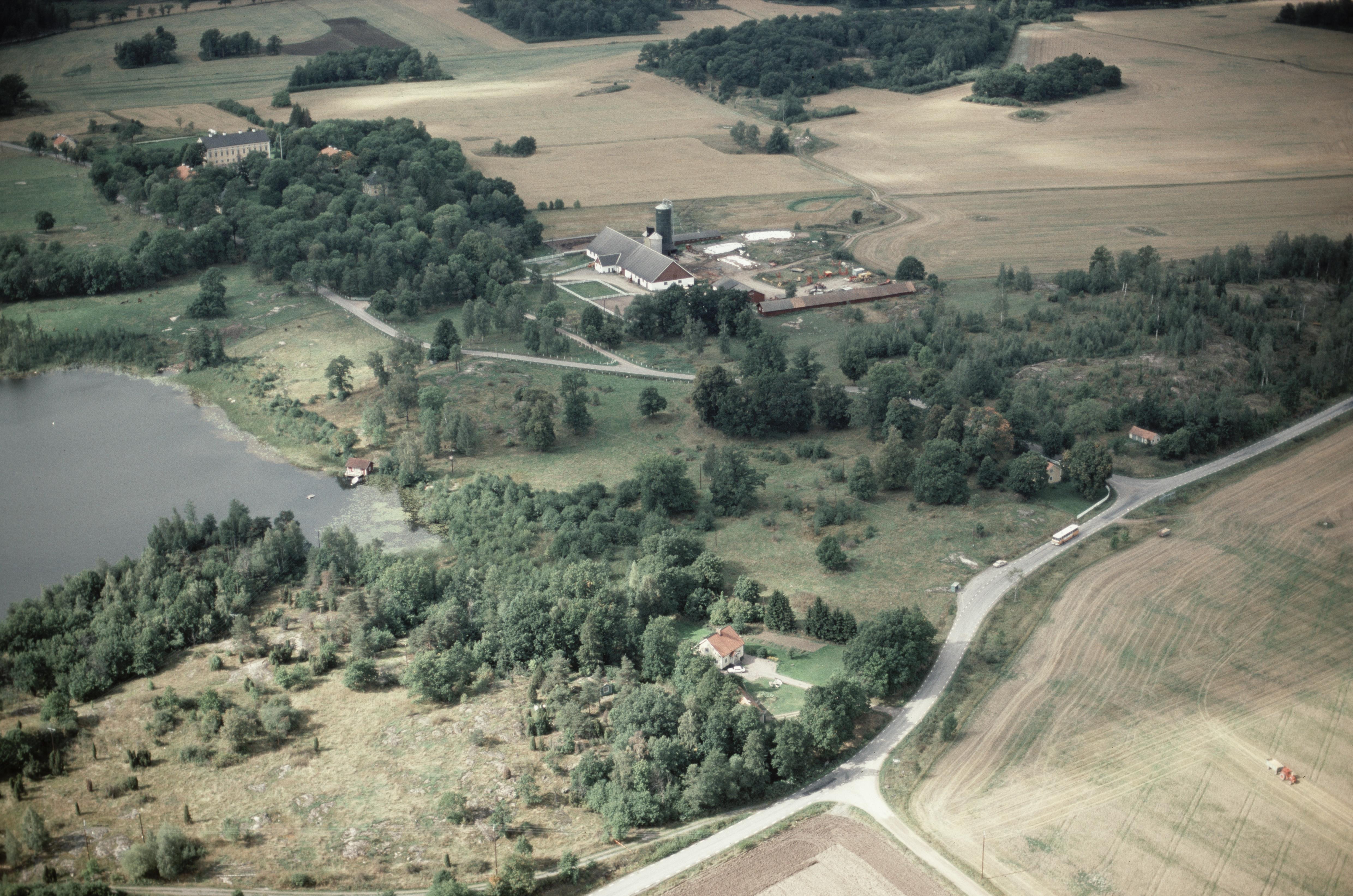 Beskrivning: Uppe till vänster Hylinge herrgård (benämns även Hylings slott) RAÄnr Västra Husby 132:1 vid Lillsjön. Vid bildens mitt vallfragment Götavirke Västra Husby 111:1, Dömestads gamla tomt RAÄnr 110:1 m.fl. Bilden är tagen mot (väderstreck): V
