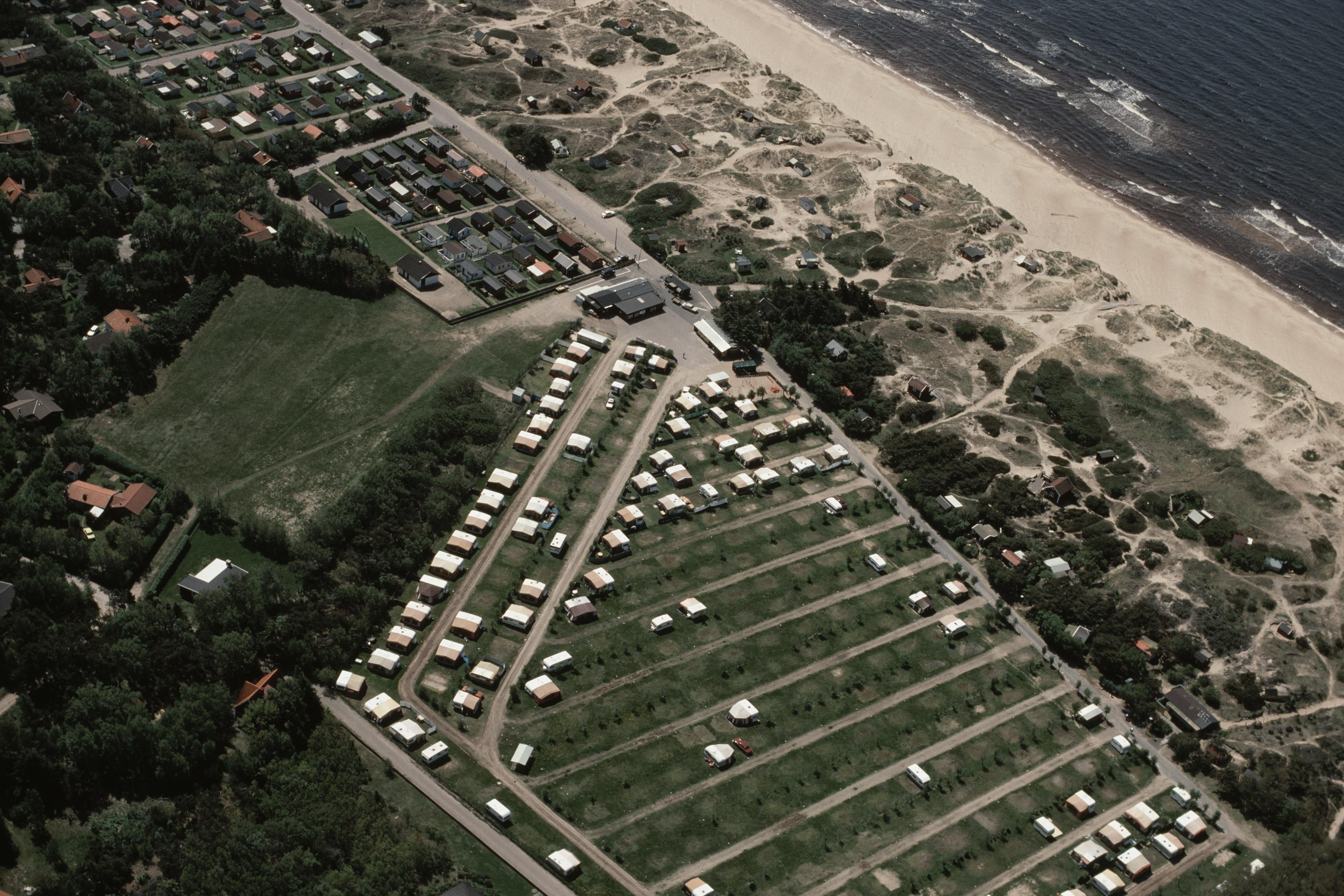 Beskrivning: Campingplats och stugby i norra delen av tätorten Mellbystrand vid gränsen till Hökagården och naturreservatet Hökafältet. Bilden är tagen mot (väderstreck): SV