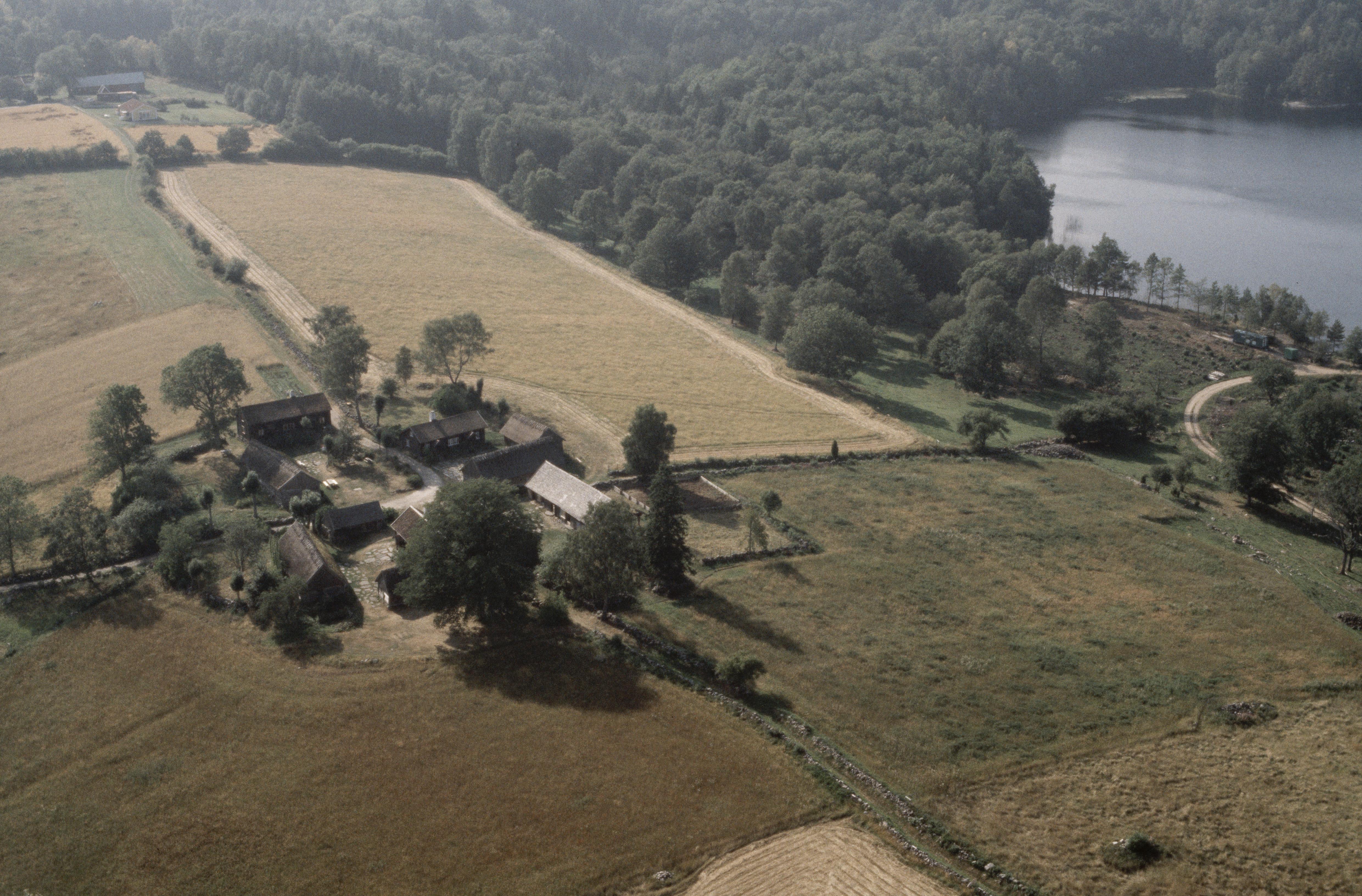 Beskrivning: Äskhults by RAÄnr Förlanda 50:1. Svinsjön uppe till vänster. Bilden är tagen mot (väderstreck): NV
