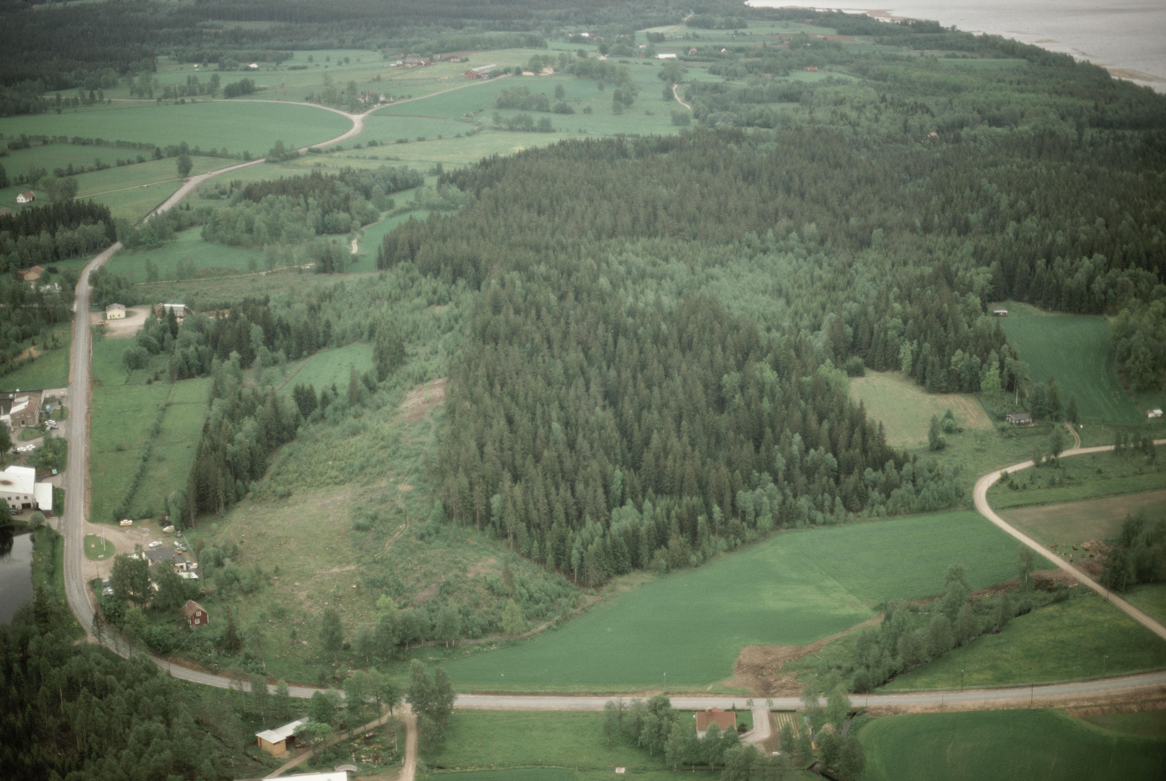 Beskrivning: Fornåkrar RAÄnr Södra Säm 122:1 vid Lyckåsen i bildens mitt. I bildens övre del Ljunghem. Bilden är tagen mot (väderstreck): SO