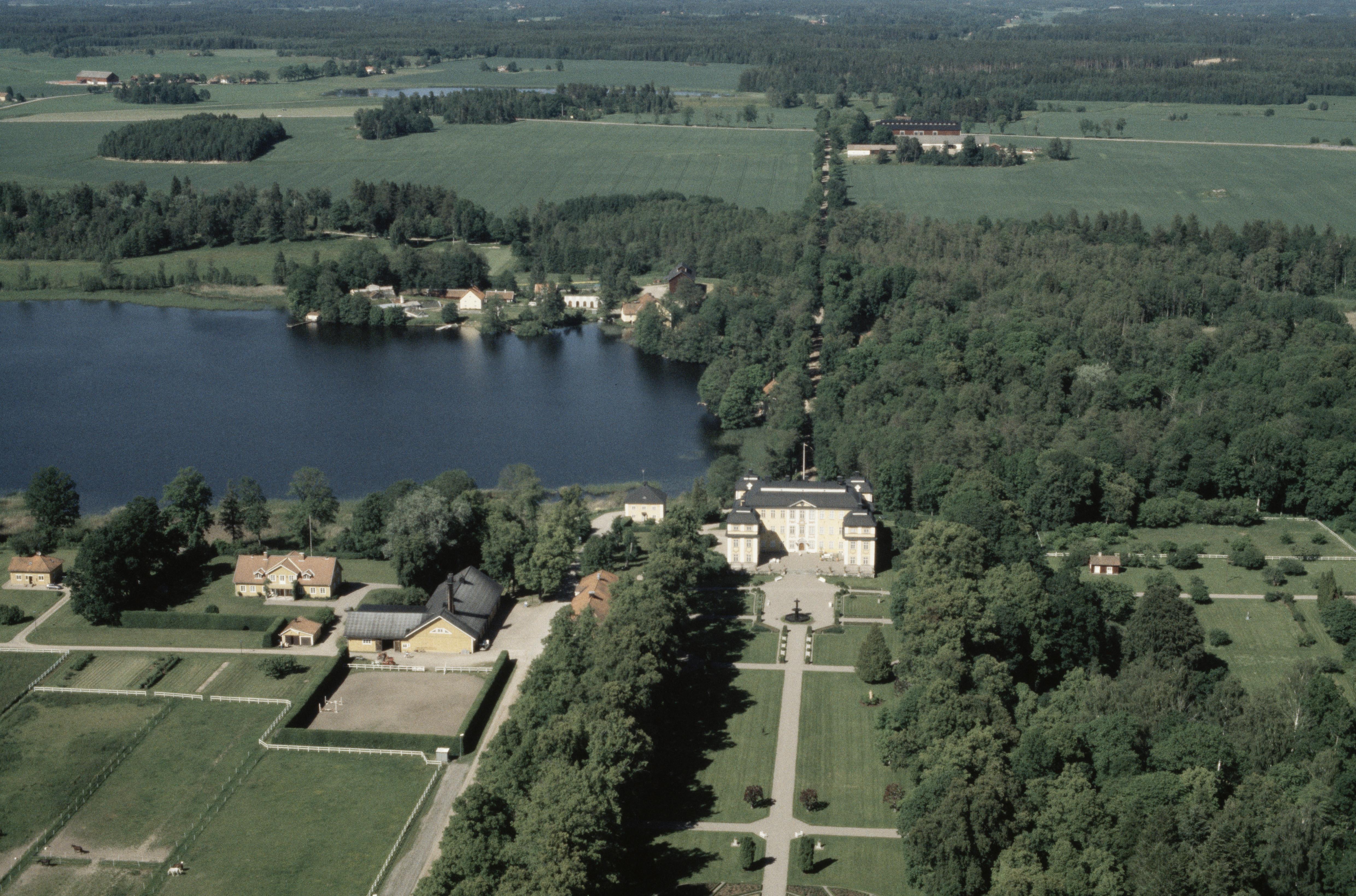 Beskrivning: Eriksbergs slott (skrivs även Ericsbergs slott), byggnadsminne RAÄnr Stora Malm 47:1, mellan Eriksbergssjön och Eriksbergsån. Bilden är tagen mot (väderstreck): NO