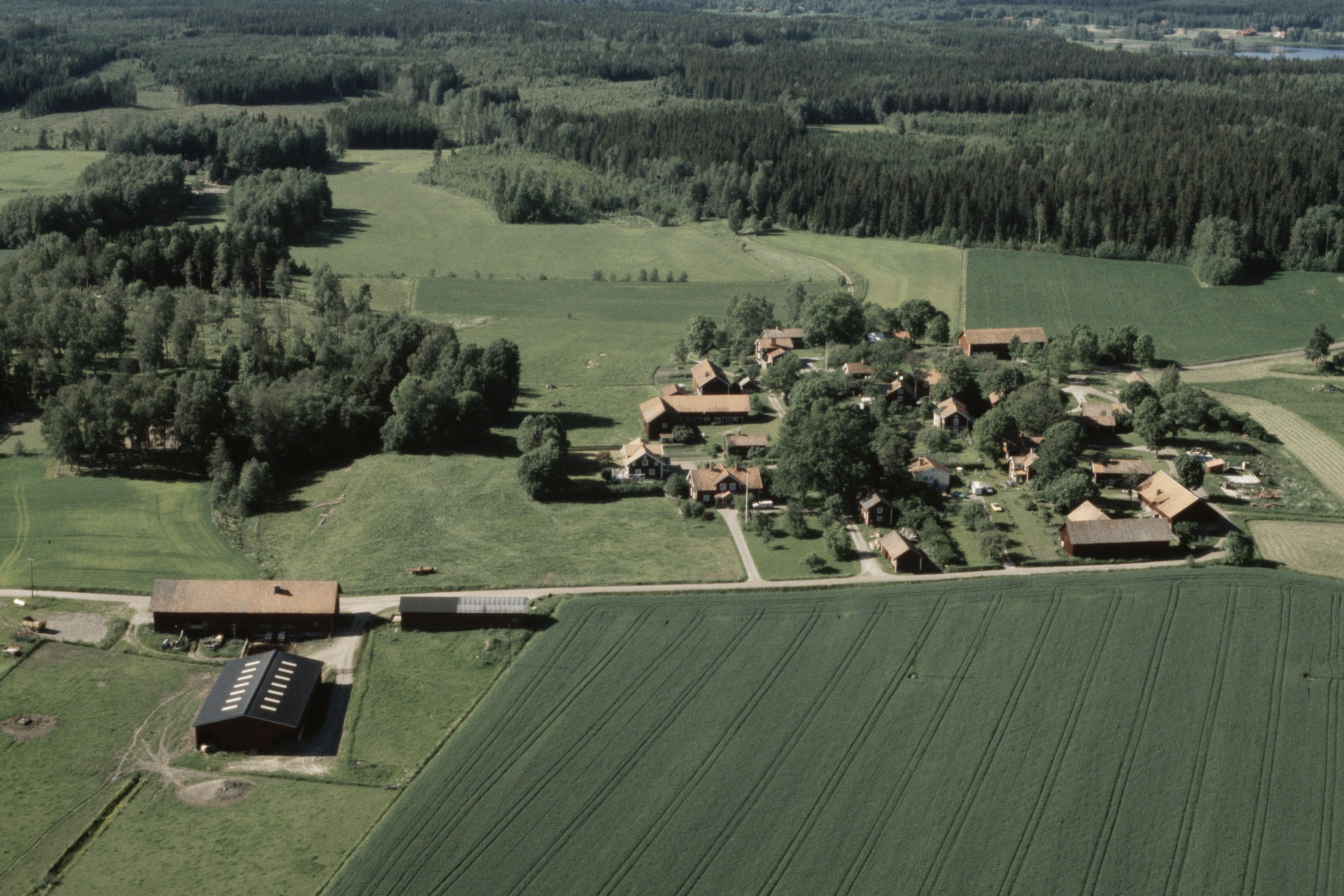 Beskrivning: Byn Öknaby. Fyndplats (stenyxa) RAÄnr Floda 187:1 i byns norra del. Bilden är tagen mot (väderstreck): NNV