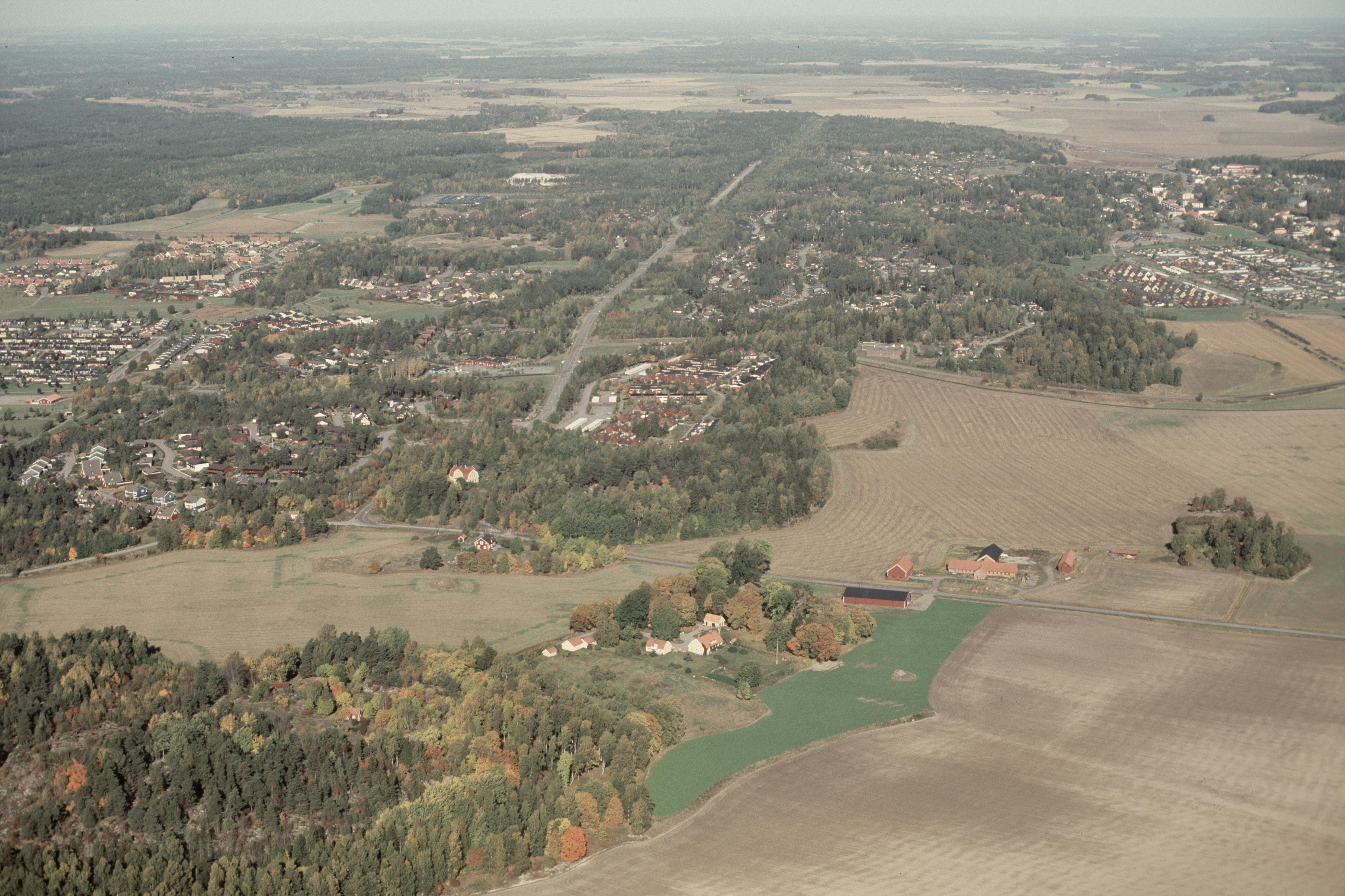 Beskrivning: I bildens nedre del området Väppeby i västra delen av Bålsta tätort. Vid bildens mitt Väppebyberget med boplats RAÄnr Kalmar 112:1. I bildens övre del socknet Yttergran. Bilden är tagen mot (väderstreck): NV