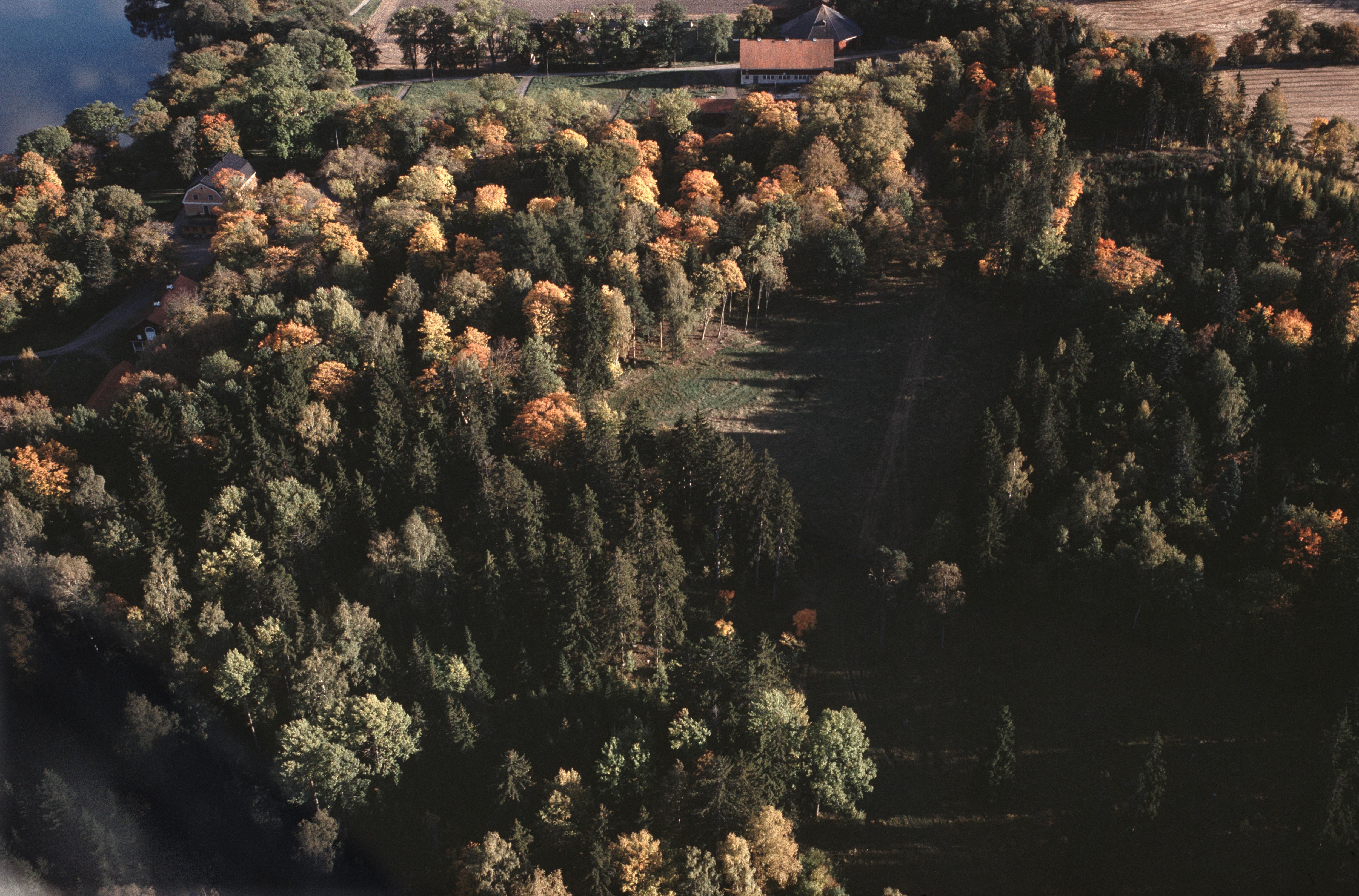 Beskrivning: Håtunaviken i Mälaren. Signhildsbergs kungsgård med gravfält Håtuna 99:1 m.fl. I bildens nedre del tegelindustri RAÄnr Håtuna 122:1. Bilden är tagen mot (väderstreck): Ö