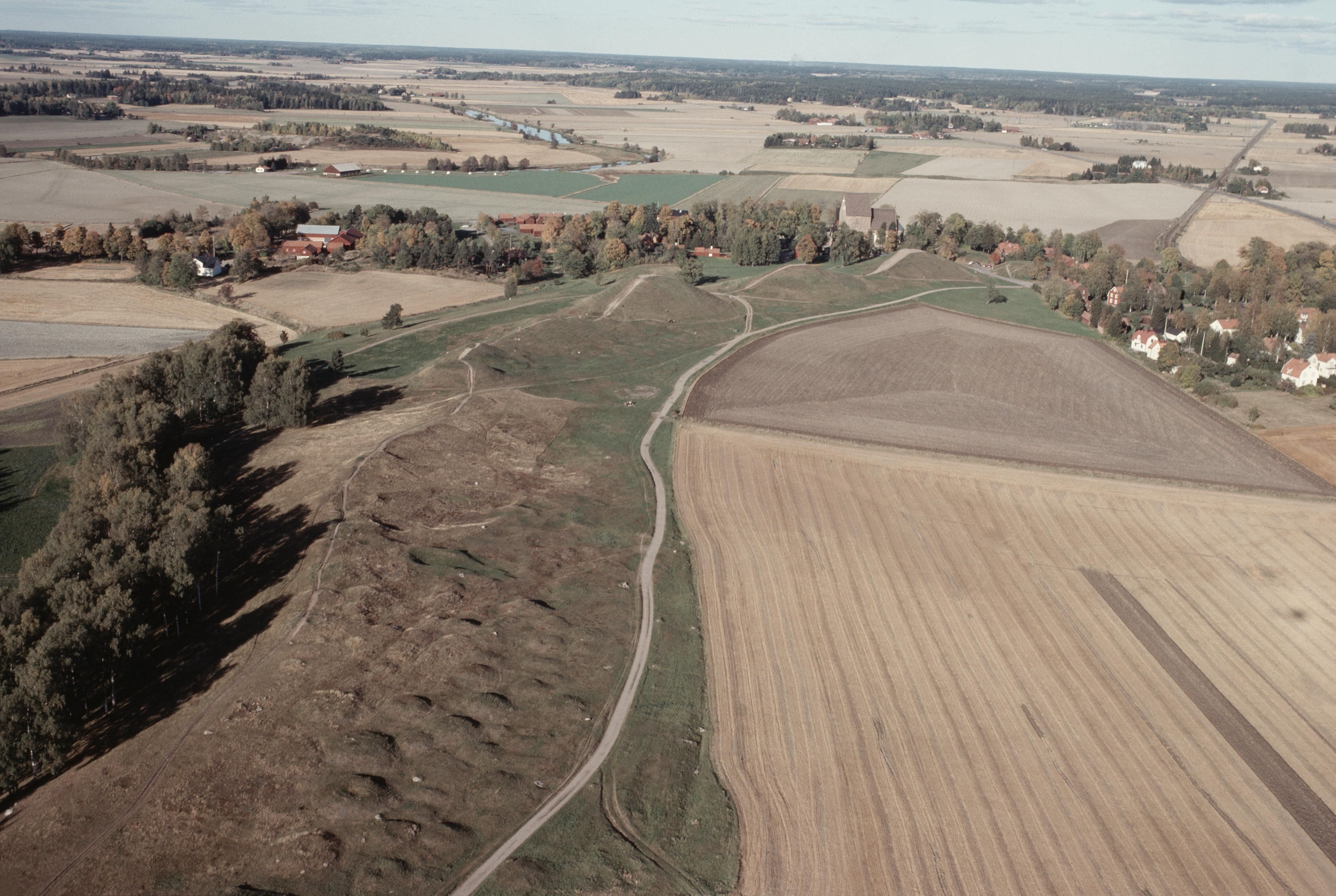 Beskrivning: Fyrisåns dalgång. I bildens övre del Gamla Uppsala kyrka RAÄnr Uppsala 774, Kungshögarna gravfält Uppsala 123:1, boplats Uppsala 263:1 m.fl. Bilden är tagen mot (väderstreck): N