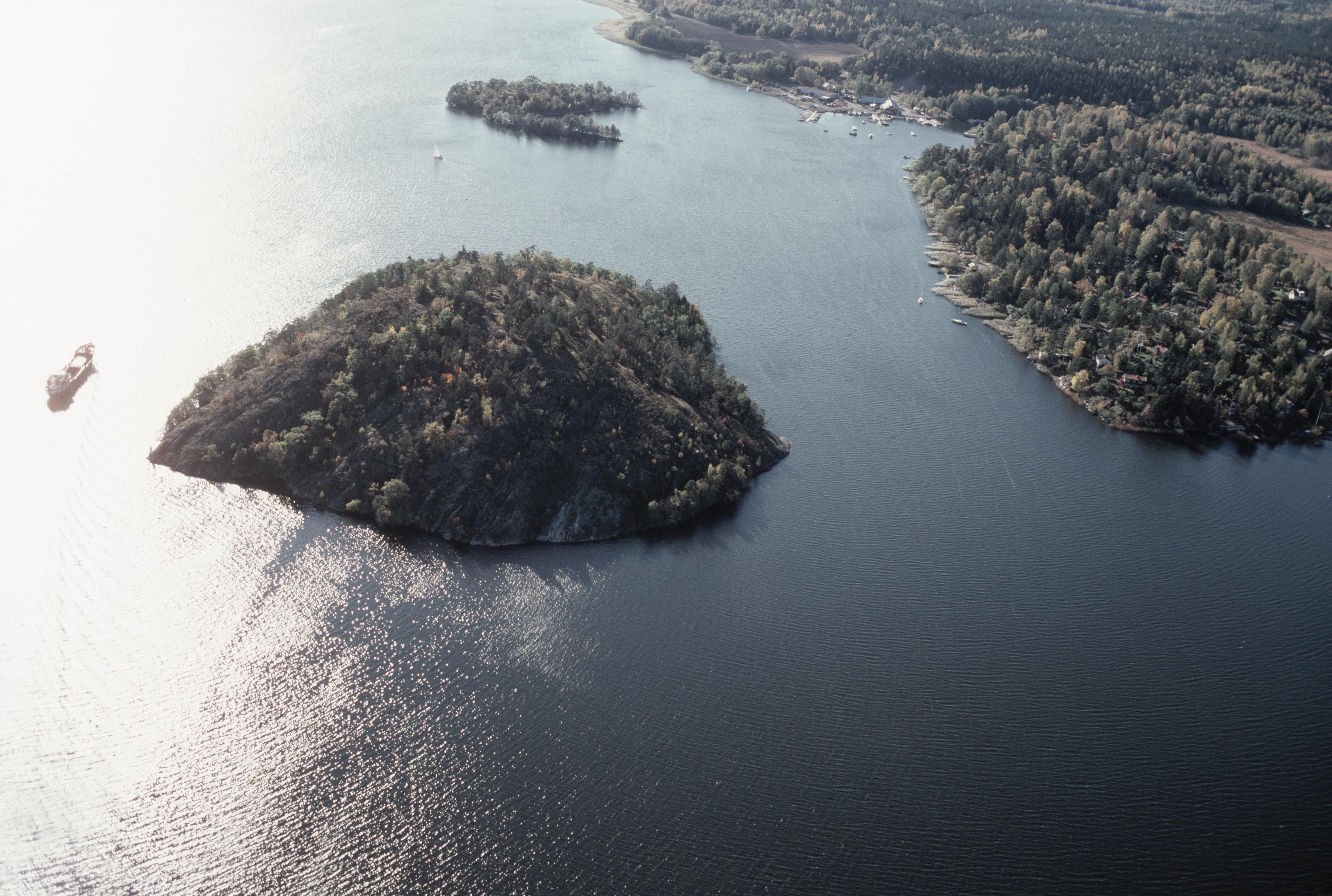 Beskrivning: Vid bildens mitt ön Estbröte mellan Fiskarfjärden och Vårbyfjärd i Mälaren. På ön fornborg RAÄnr Ekerö 140:1. Bilden är tagen mot (väderstreck): SV