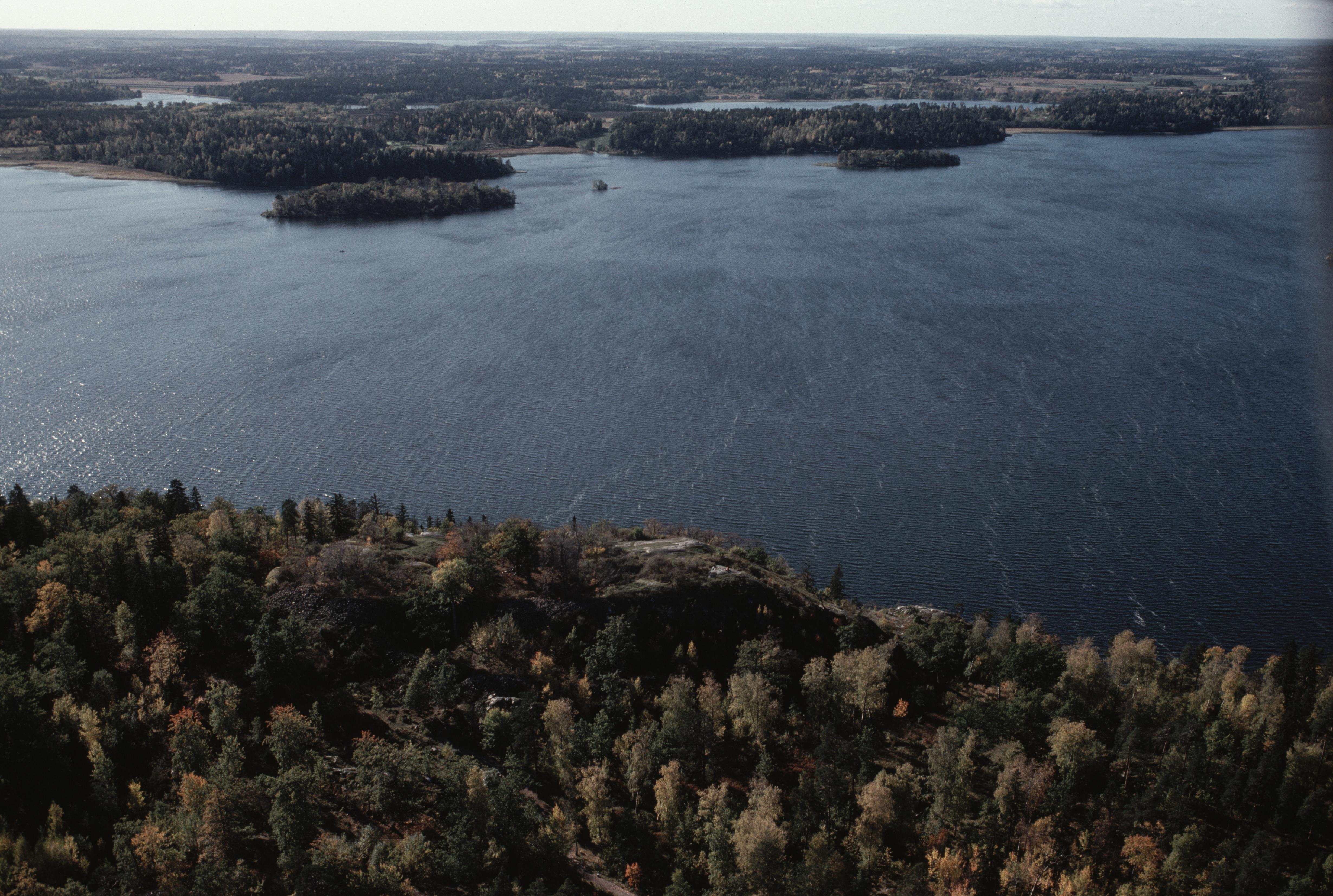 Beskrivning: Under bildens mitt fornborg Gåseborg RAÄnr Järfälla 62:1 vid Görväln i Mälaren. I bildens övre del Ricksättra och Väntholmen i socknet Hilleshög. Bilden är tagen mot (väderstreck): SV