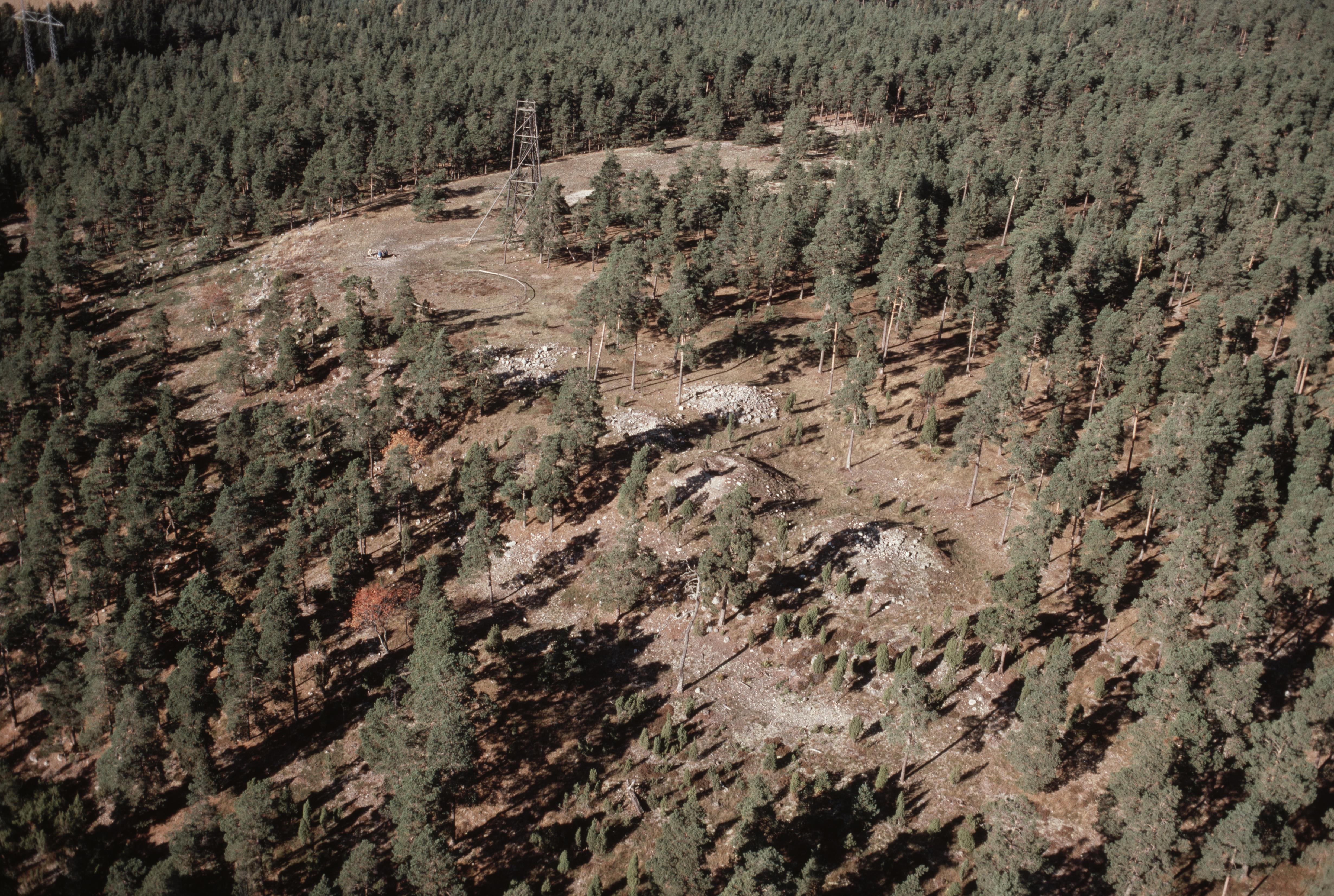 Beskrivning: Rösaringsåsen. Vid bildens mitt gravfält RAÄnr Låssa 23:1 och labyrint Låssa 24:1. Uppe till höger södra änden av färdväg (Rösarings processionsväg) RAÄnr Låssa 85:1. Bilden är tagen mot (väderstreck): NV