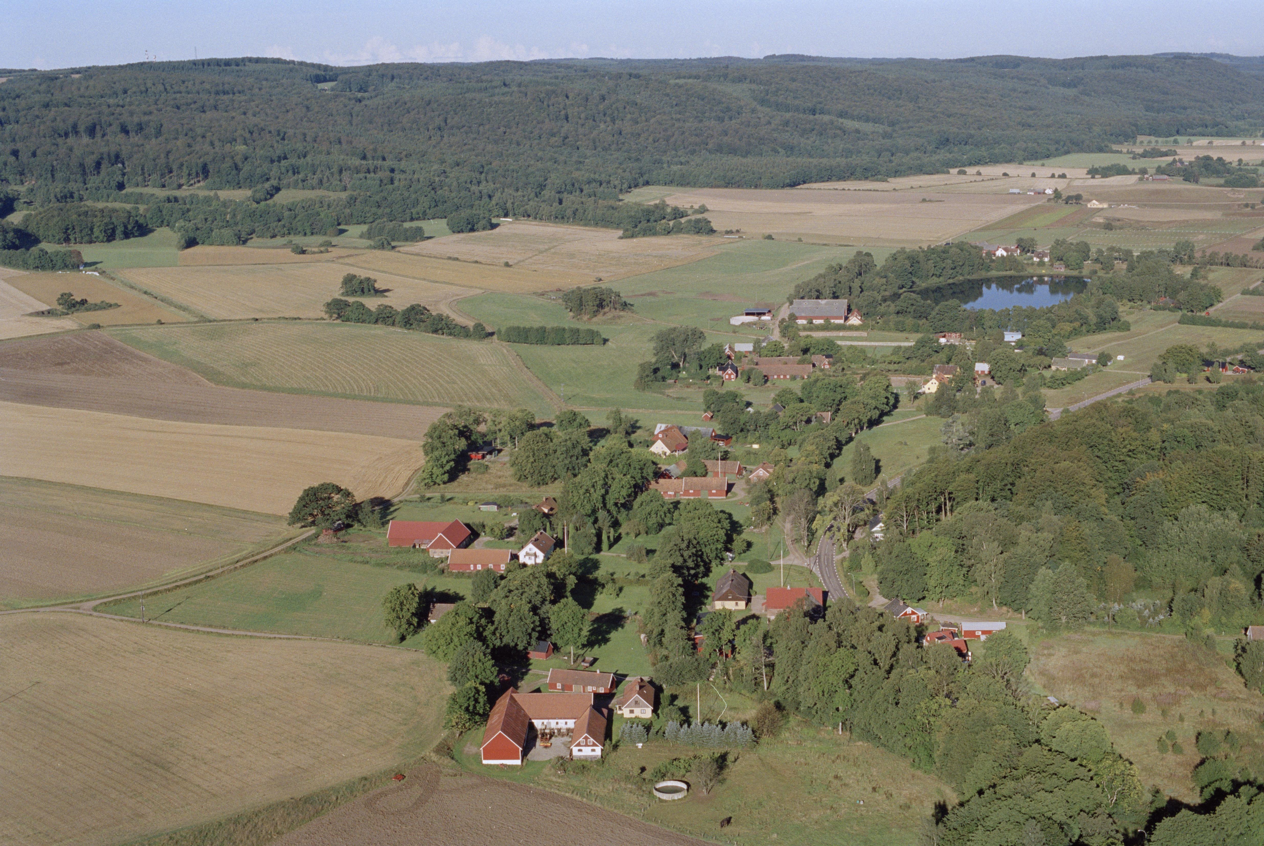 Beskrivning: Bonnarps by vid Skärån, väster om tätorten Ljungbyhed. Boplats RAÄnr Riseberga 209:1 m.fl. vid bildens mitt. Bonnarpssjönuppe till höger, Bilden är tagen mot (väderstreck): V