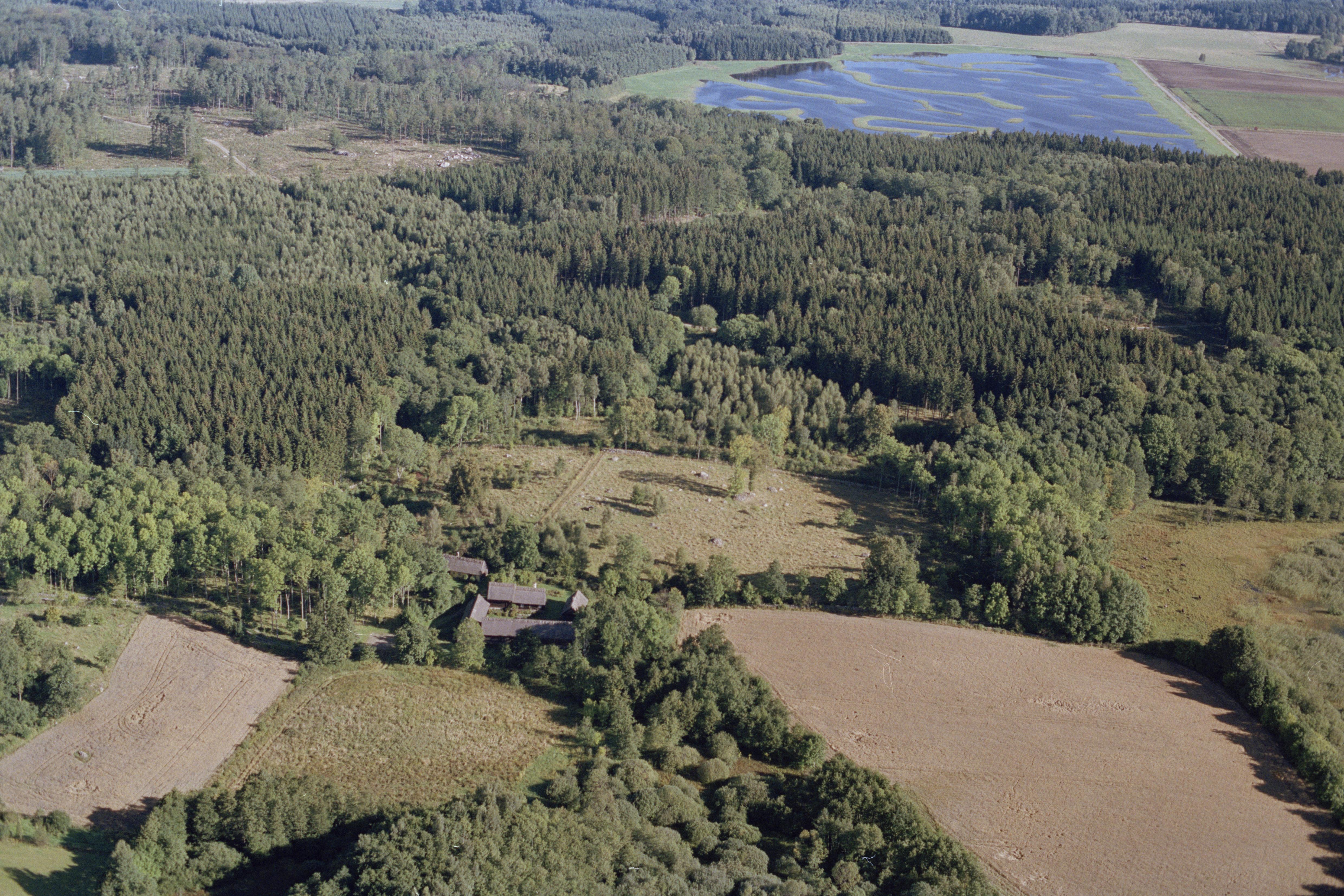 Beskrivning: I bildens nedre del Ballingstorps bytomt RAÄnr Kviinge 6:1 och Ballingstorpsgården byggnadsminne Kviinge 6:2. Bilden är tagen mot (väderstreck): N