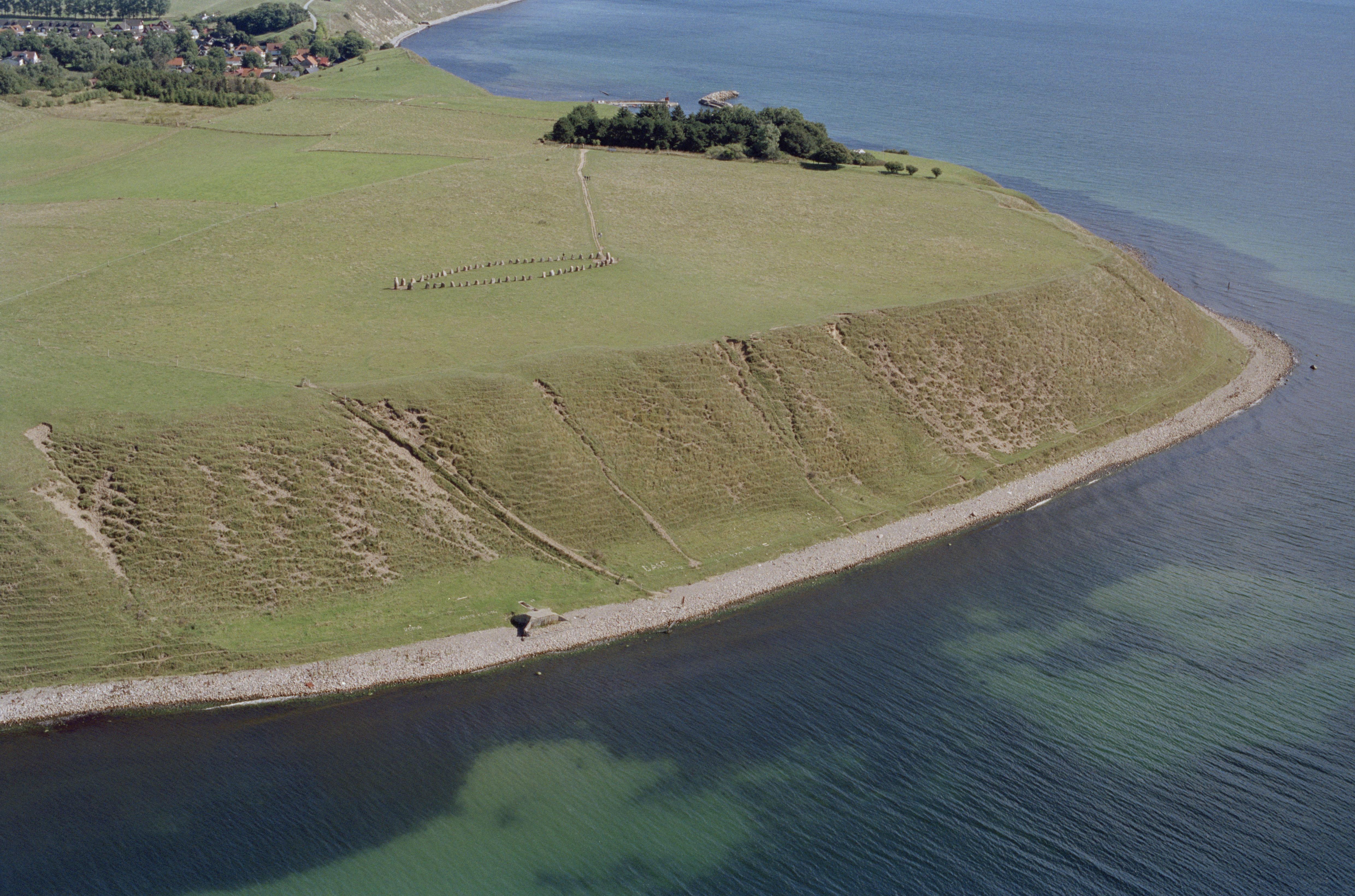 Beskrivning: Skeppssättningen Ales stenar RAÄnr Valleberga 20:1 vid Kåseberga. Bilden är tagen mot (väderstreck): OSO