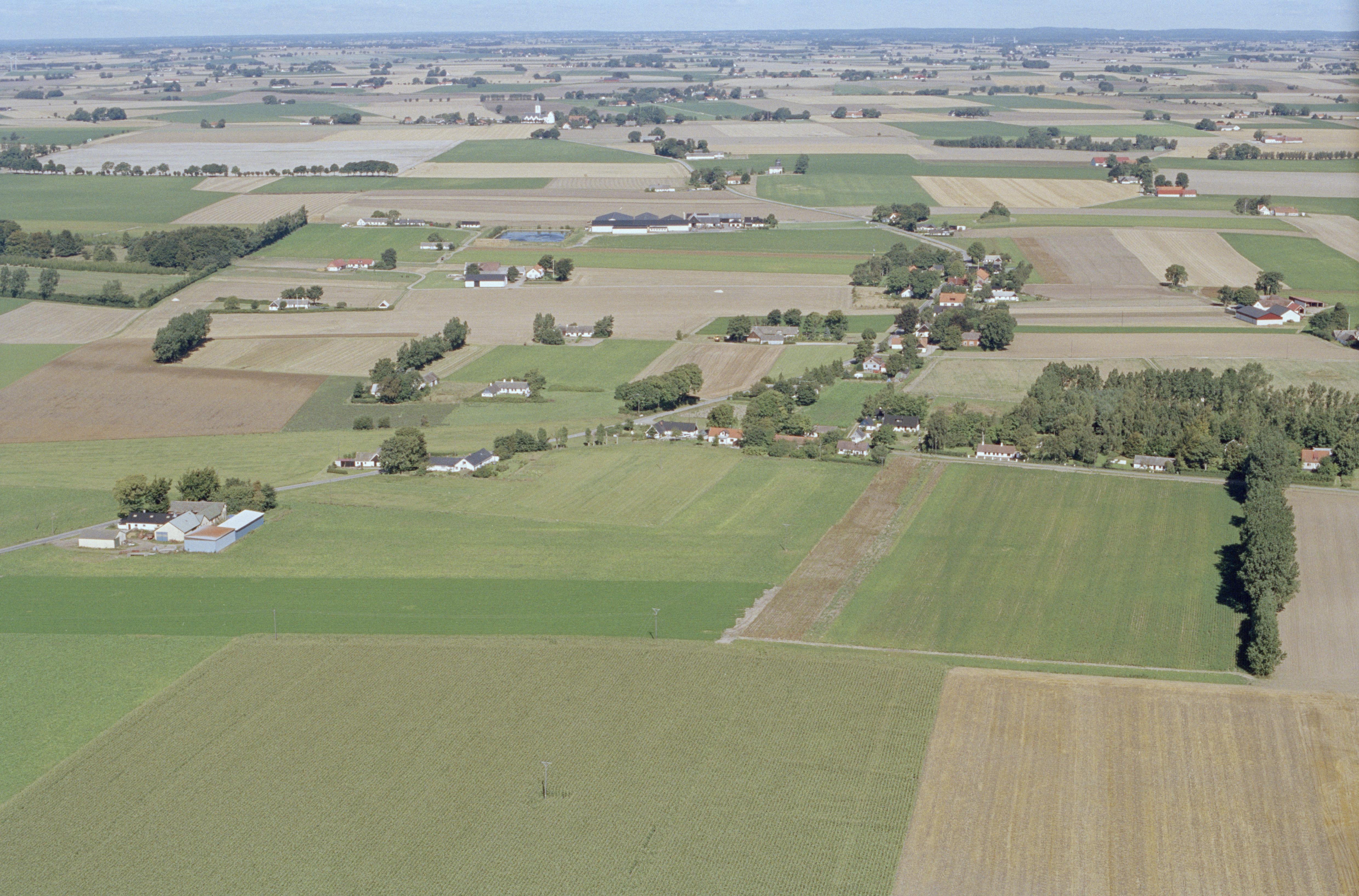 Beskrivning: Peppinge by. Valleberga kyrka i bildens övre del. Bilden är tagen mot (väderstreck): N